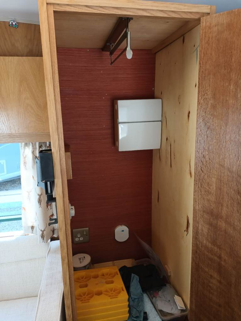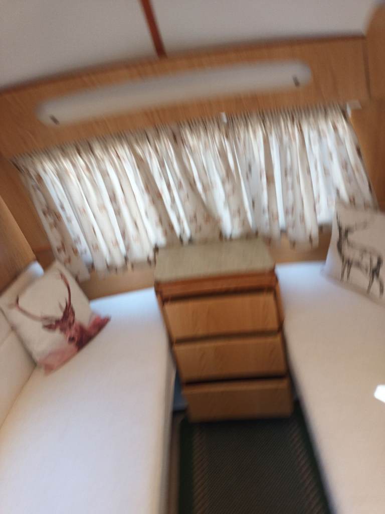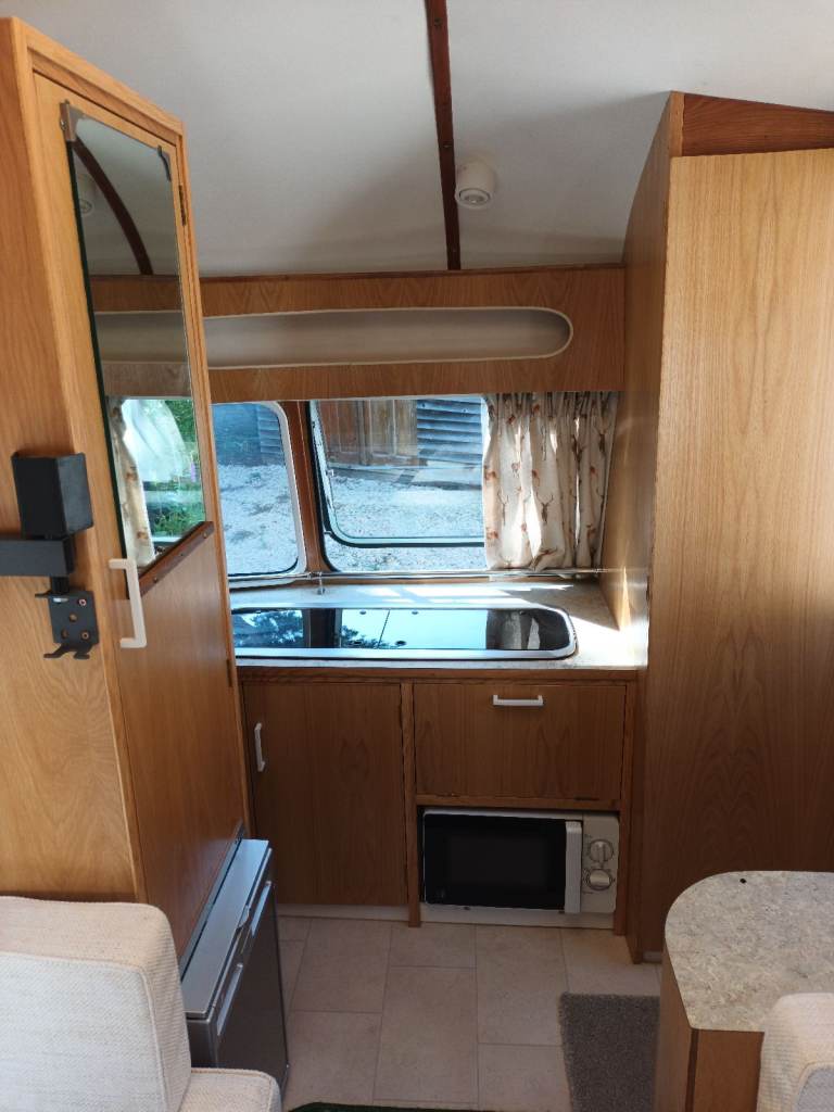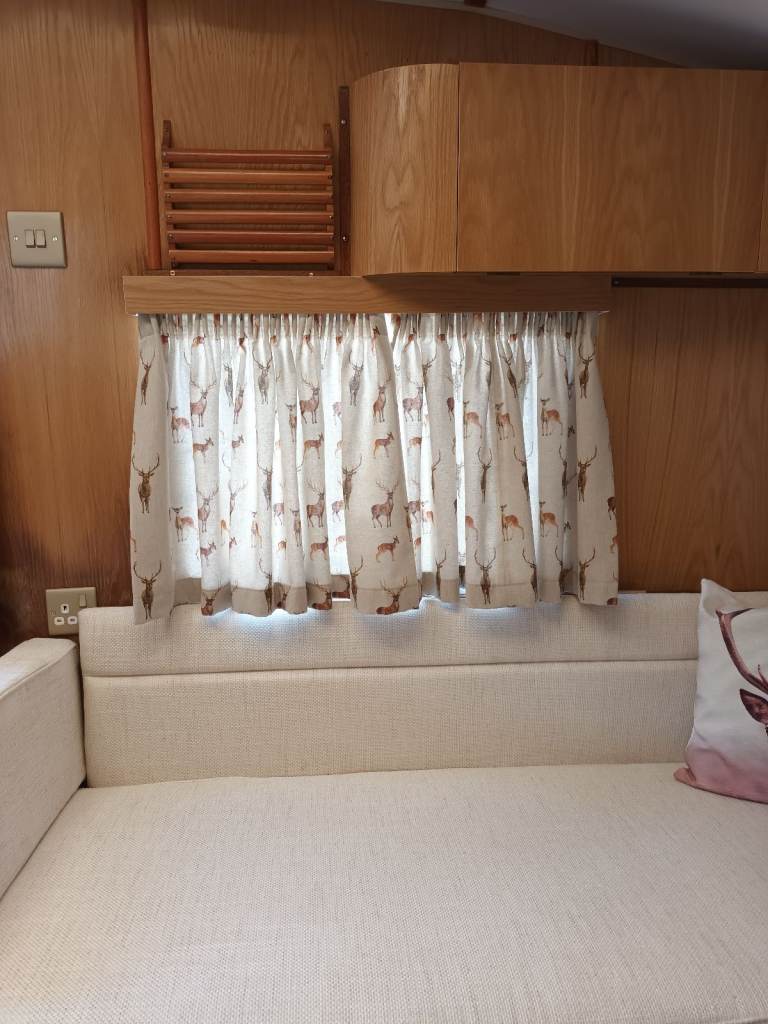 2 berth single beds cheltenham fawn caravan. Completely refurbed, all rotten wood replaced with hardwood, new buffurlow ply floor, 240 volt Electrics fitted [ plug in at home or campsite ] toilet compartment sealed off by byfold doors, gas hob,sink [cold water only] modern Dometic fridge fitted. [does require 12 volts electric to run it ]...Please note no 12 volt fitted. All walls and cieling have been replaced with oak venered ply/ painted ply. 5 lever deadlock fitted in bottom section of stable type door. Interior seat material is high quality John Lewis, with good quality sponge. Hand made curtains made from a deer printed material. The Exterior has been painted in High quality Marine paint .. cream/green. I have many photographs of the refurbishment which was completed 15 months ago... only used 3 times since then.
