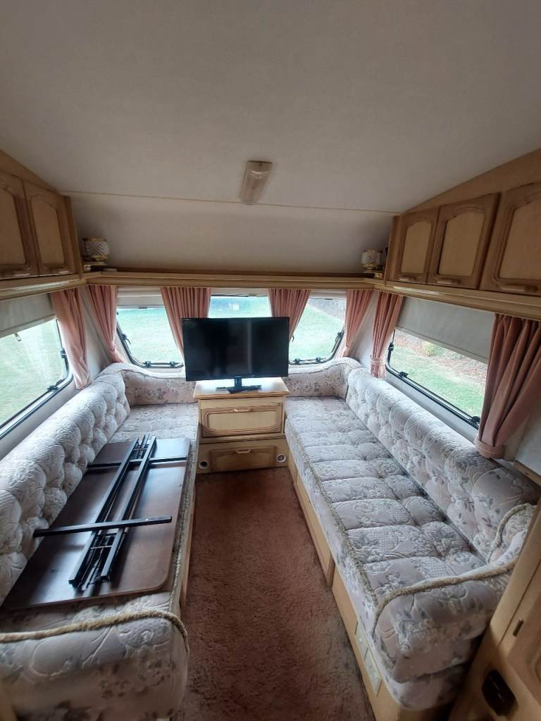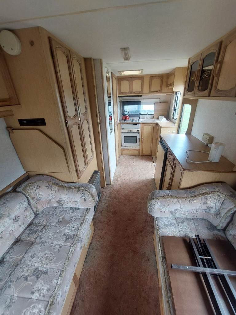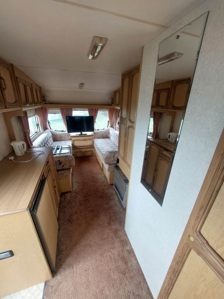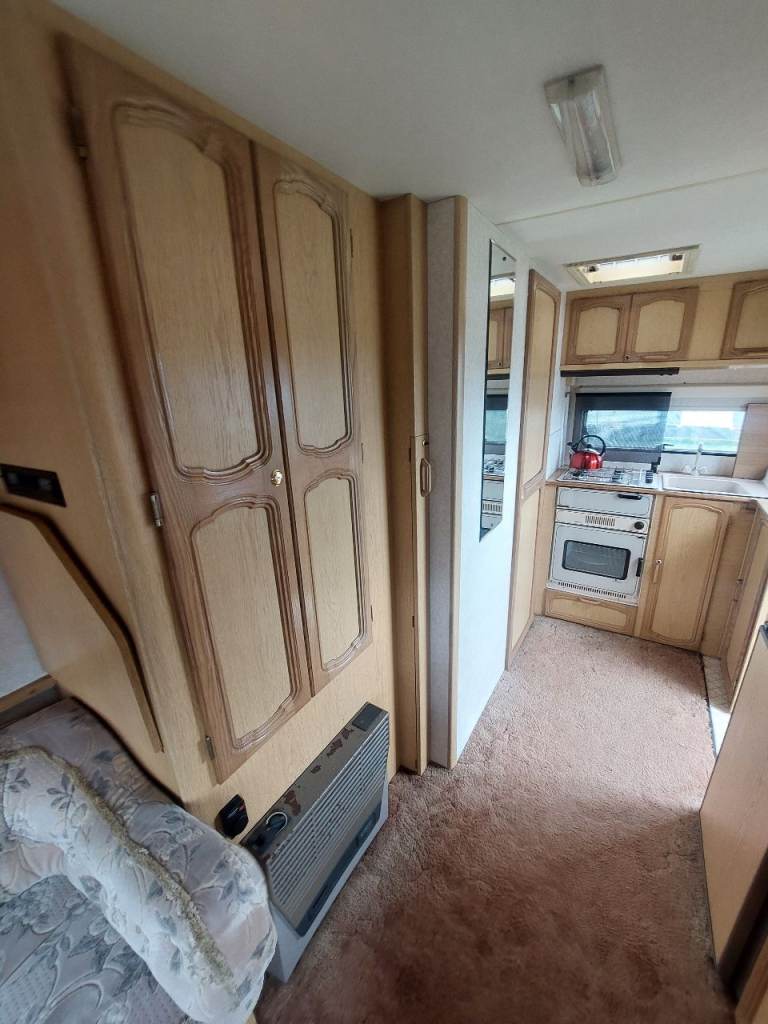 Good condition for its age with no damp. 19ft to towing hitch. Loads of storage. Comes with loads of extras. Full size awning. Full size shower. Toilet and basin in the bathroom. King size bed at front or two single beds. Full size cooker and fridge freezer, grill and hobs, sink in the kitchen. Everything works. Ready to use straight away.