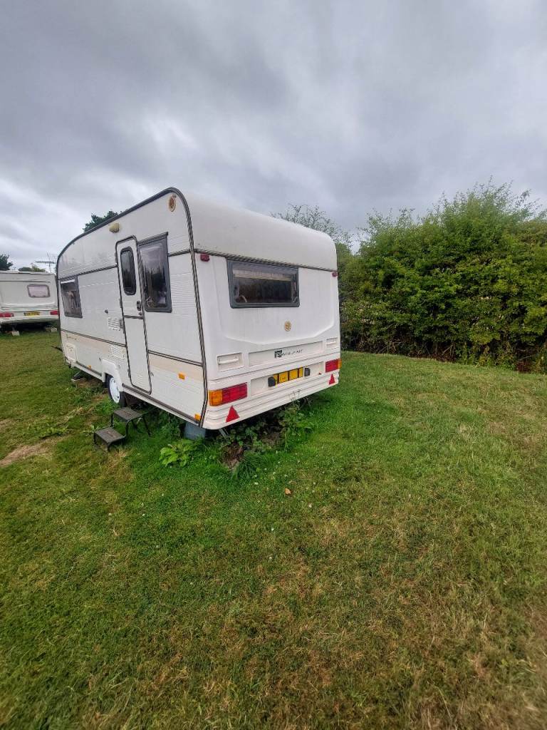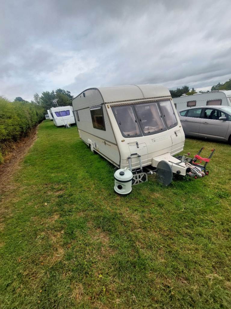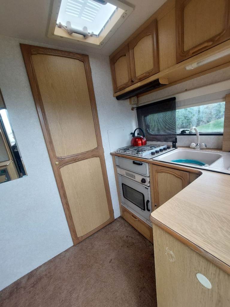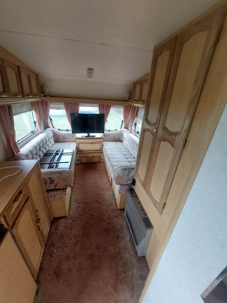 Good condition for its age with no damp. 19ft to towing hitch. Loads of storage. Comes with loads of extras. Full size awning. Full size shower. Toilet and basin in the bathroom. King size bed at front or two single beds. Full size cooker and fridge freezer, grill and hobs, sink in the kitchen. Everything works. Ready to use straight away.