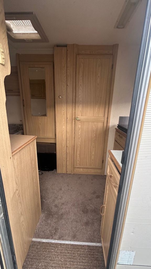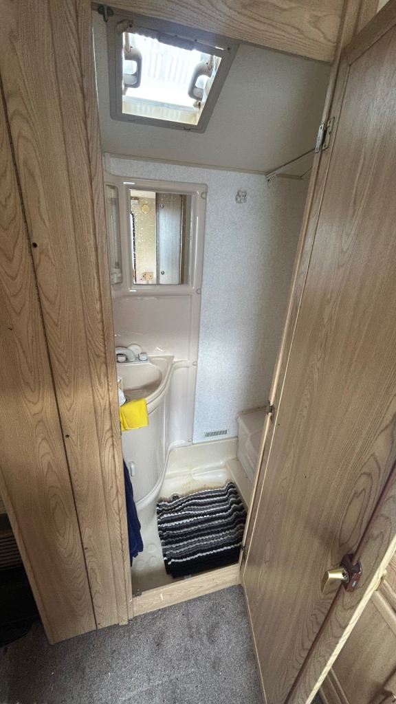Caravan comes with awning (on floor under the awning carpets in internal picture). Toilet fine and gas works for hob, the gas was checked and signed off in July but we didn’t try the heater.