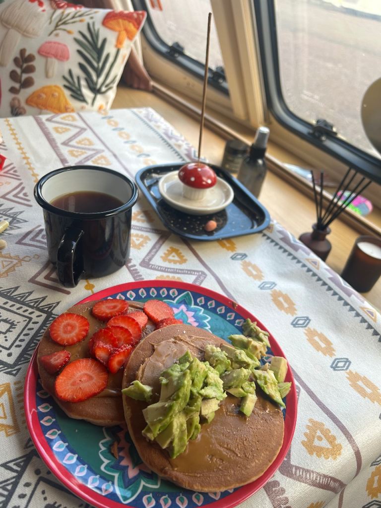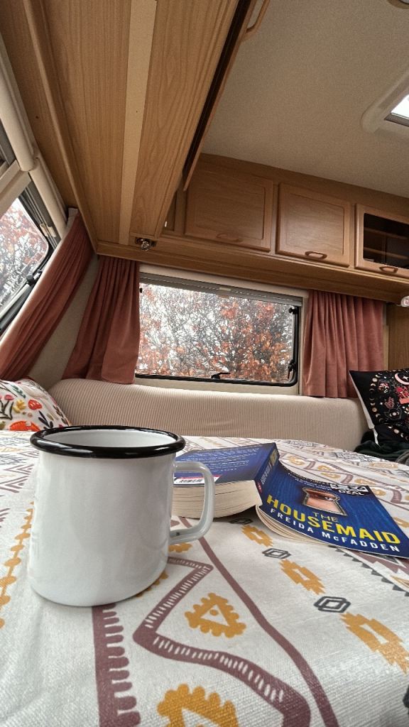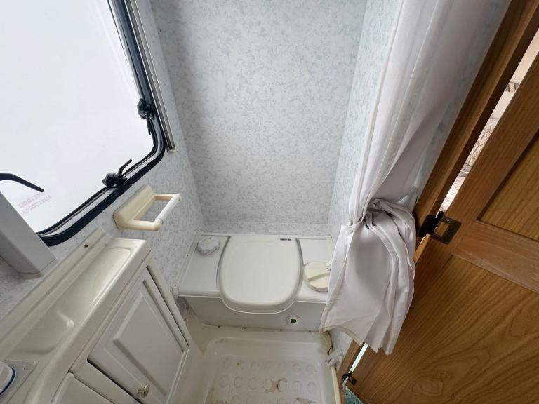 There’s a full fridge freezer. Bathroom and shower.