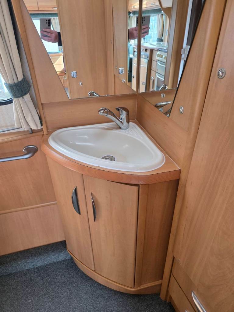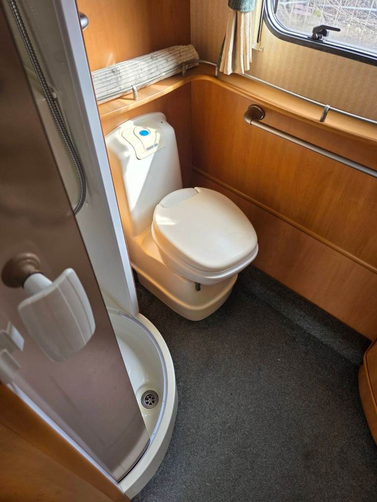 • Full end washroom with separate shower, swivel cassette toilet and large wardrobe