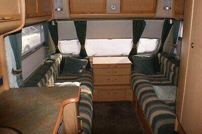 5 Berth ( but could sleep 6 ) Pull up privacy blinds and fly screens, Halfords Battery, Status TV Ariel, Built in Sony Stereo, Built in Battery charger, Front and rear tables, Overhead reading lights, Hot Water, Gas Cooker and Hob ( 3 gas + 1 elec ) Fridge, Gas bottle, blown air Heating, Ceiling Fan, Cassette Toilet, Shower, Large Skylight, Mains and 12v lighting, lots of storage, Front Towing cover, Alloy Wheels, Porch Awning and groundsheet, Electric Lead, Aquaroll Water bottles and Wastemaster container, Removable carpets, 2 Bins, 2 Wheel clamps and Hitch lock, Spare Wheel, Caravan Levellers and Wheel chocks, Ground pegs and mallet, Kettle, Toaster, Saucepans, Cups/Plates and Cutlery.