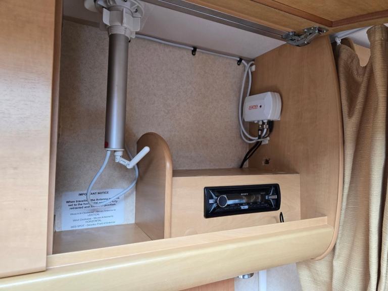 Sunroof; Central Heating; TV Aerial; Microwave; Cooker; 12V Lighting; Blinds; Grill; Double Glazing; Mains Hookup; Separate Shower; Sink; Oven; 240V Lighting; AM/FM Stereo; Hand Washbasin
