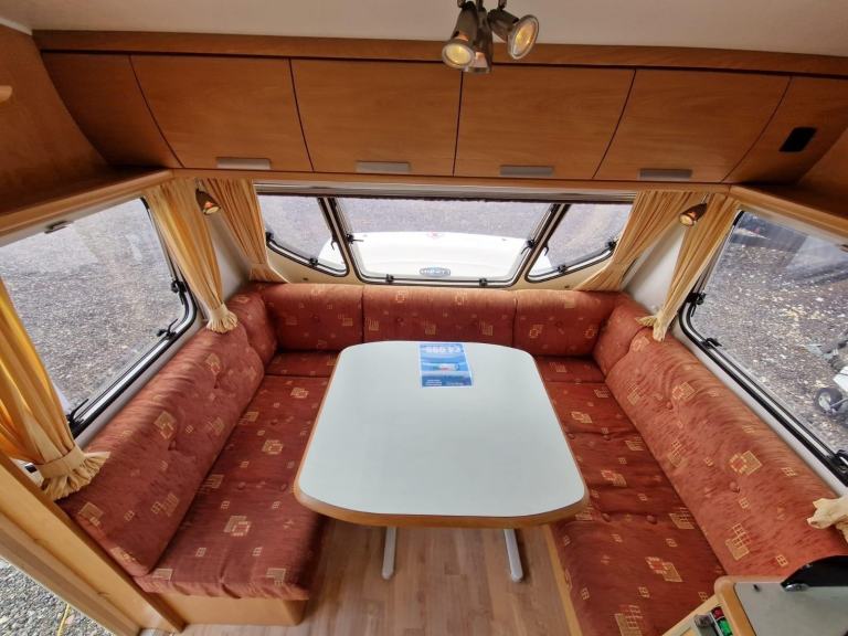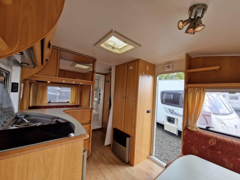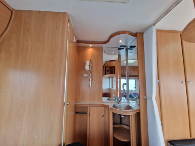 Sunroof; Handicapped Accessible; Central Heating; TV Aerial; Microwave; Fixed Double Bed; Cooker; 12V Lighting; External Side Lockers; Central Seating Group; Blinds; Grill; Double Glazing; Separate Shower; Mains Hookup; Oven; 240V Lighting; Sink; AM/FM Stereo; Hand Washbasin; Round Seating Group