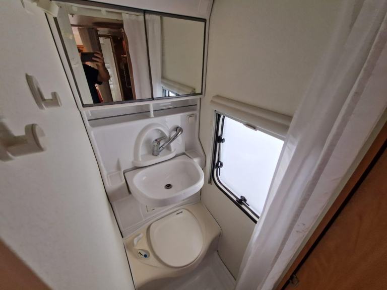 Sunroof; Handicapped Accessible; Central Heating; TV Aerial; Microwave; Fixed Double Bed; Cooker; 12V Lighting; External Side Lockers; Central Seating Group; Blinds; Grill; Mains Hookup; Separate Shower; Double Glazing; Oven; 240V Lighting; Sink; AM/FM Stereo; Hand Washbasin; Round Seating Group