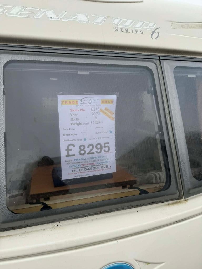 Posting for 8+ years2008 Bailey Senator Carolina 6 Berth Twin Axle FIXED BUNKS Caravan -STOCK E213
