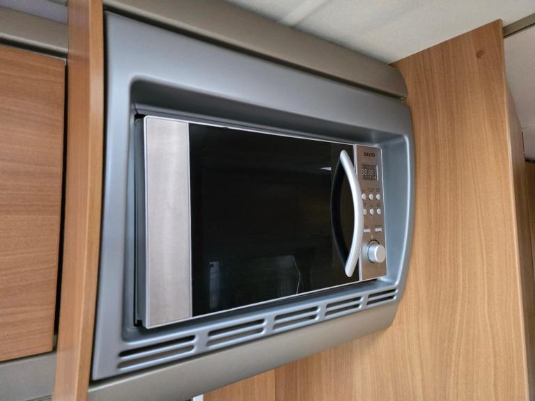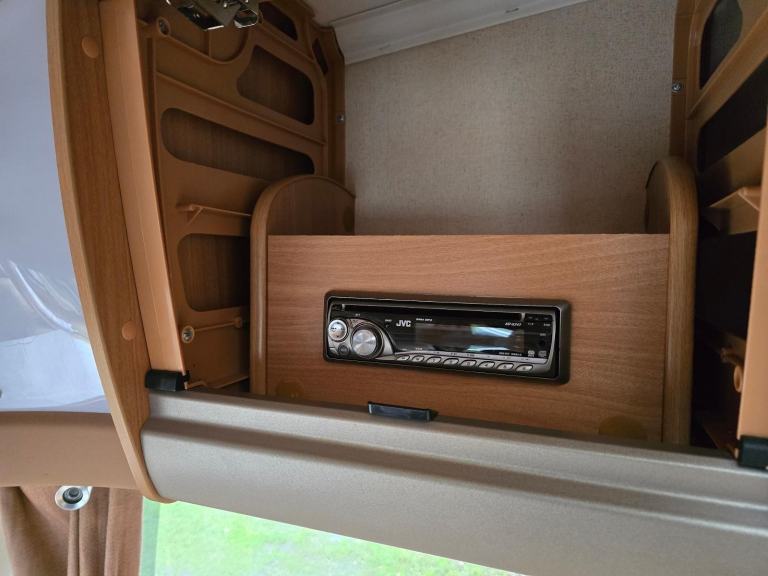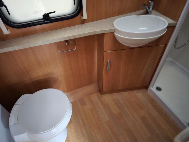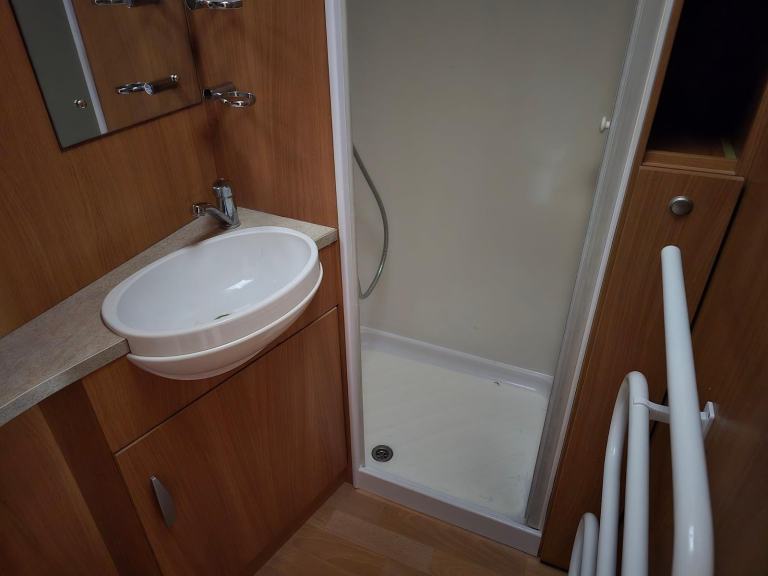 It also has a 3 way fridge freezer, full oven hob and grill, microwave oven, blinds and nets on all the windows, heki rooflight, Truma heating system, roof mounted digital aerial with booster box, 12v and 240v electrics, nice upholstery, lots of storage space, washroom with shower, sink with vanity unit and swivel cassette toilet.