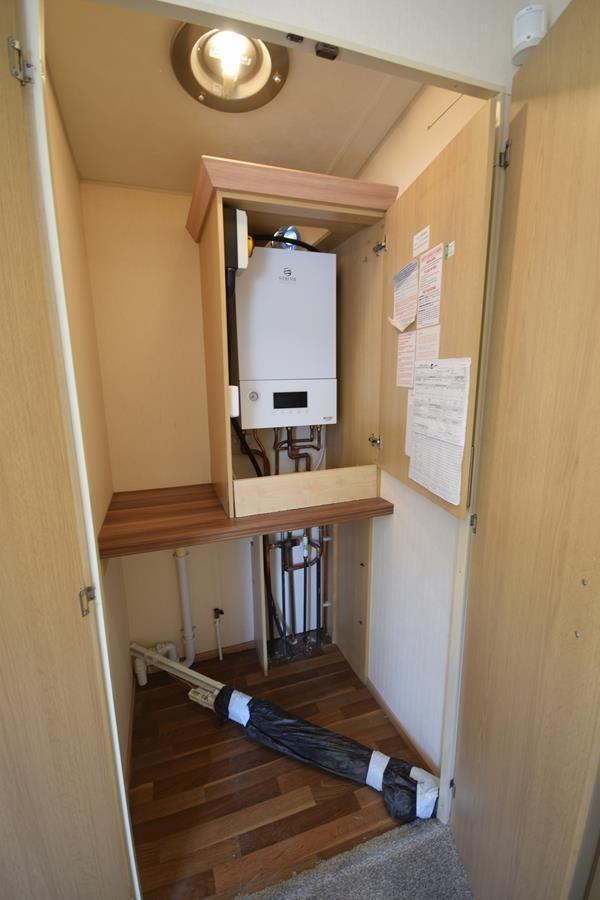 At the opposite end of the home off the lounge you have the larger master bedroom with double bed (could take literally any size!) this room also has its own en-suite just like the other, but also a very large cupboard which houses the new boiler and ample utility space with plumbing for a washing machine and space for a fridge if needed.