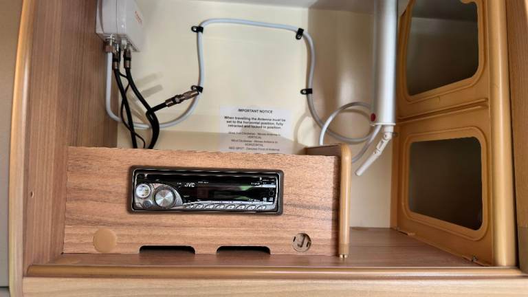 Alko Towing Stabiliser with Hitch Lock and Wheel Lock, Truma Remote Control Auto-engage Motor Mover, External Electric Socket and 2 External Barbecue Gas Outlets