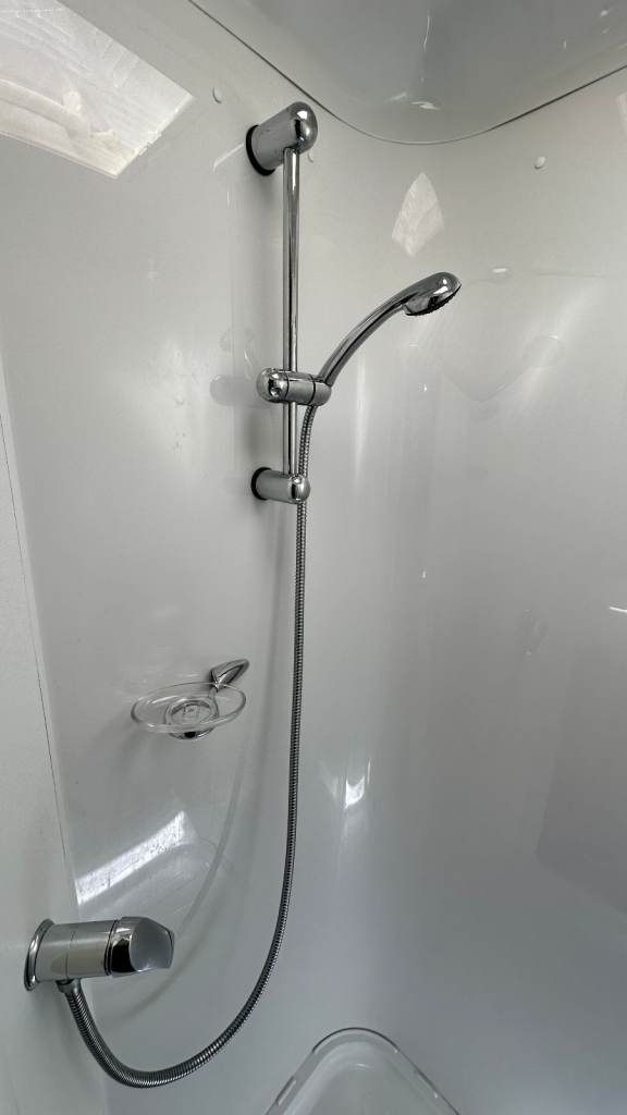 End Washroom with Electric Flush Toilet, Large Shower and “Belfast” Style Sink