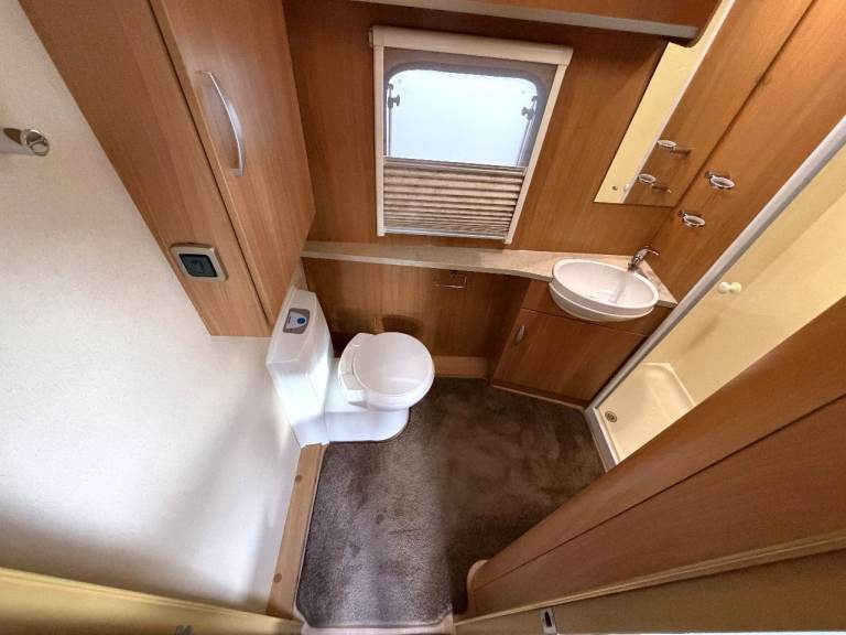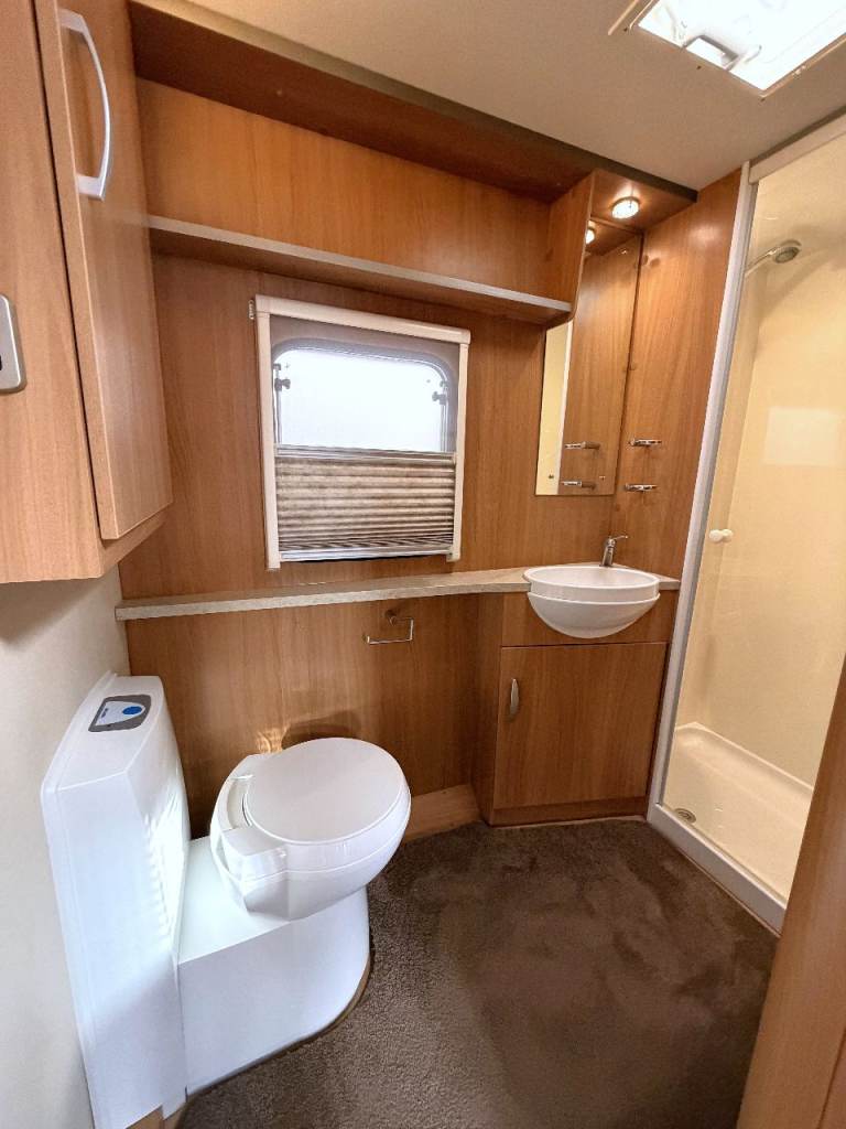 There is end bathroom has a cassette toilet, SEPARATE SHOWER,