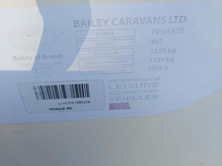 Posting for 8+ years2011 Bailey Pegasus 462 2 Berth End Washroom Caravan