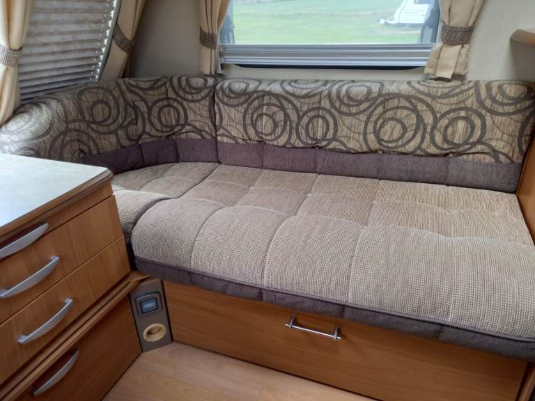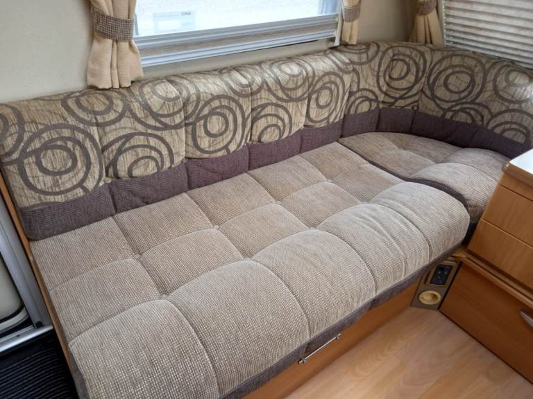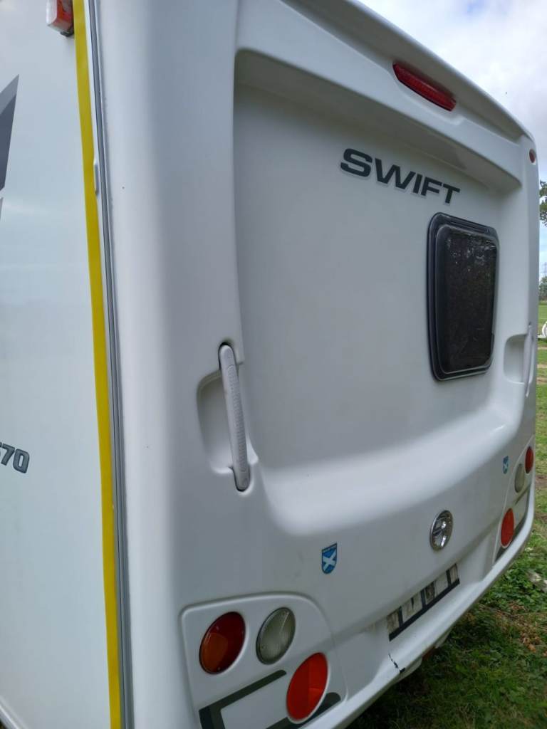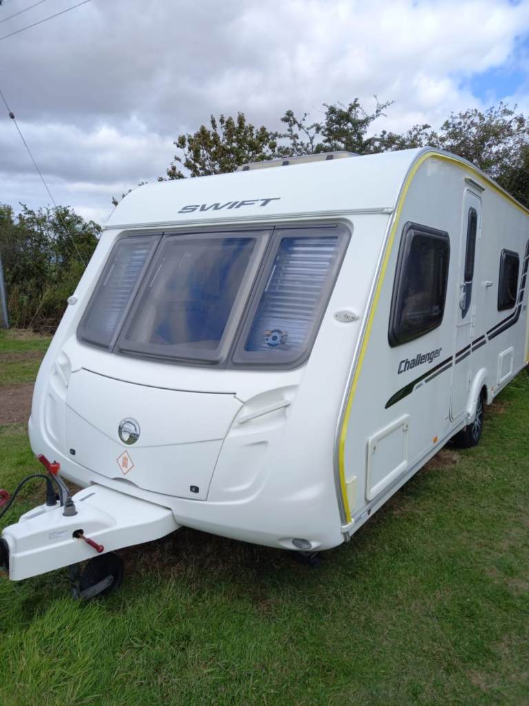 2011 Swift Challenger 570, featuring a spacious and practical 4-berth layout with a fixed rear double bed and full end washroom. The Challenger range is known for its high build quality, modern interior, and comfortable living space. This caravan also comes fitted with motor movers, making positioning and manoeuvring effortless.