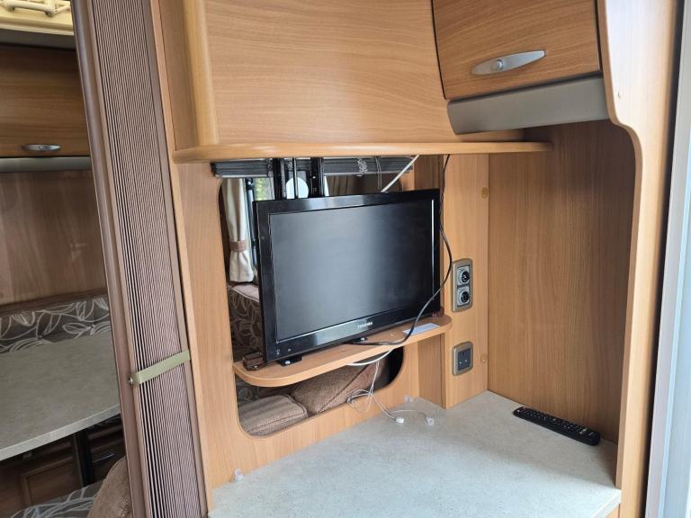 It also has a 3 way fridge freezer, full oven hob and grill, microwave oven, blinds and nets on all the windows, heki rooflight, Inet heating system, roof mounted digital aerial with booster box, 12v and 240v electrics, nice upholstery, lots of storage space, washroom with shower, sink with vanity unit and swivel cassette toilet.