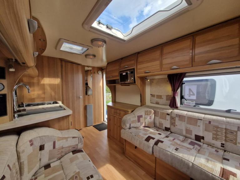Handicapped Accessible; Sunroof; Central Heating; TV Aerial; Microwave; Cooker; External Side Lockers; 12V Lighting; Central Seating Group; Blinds; Grill; Mains Hookup; Separate Shower; Double Glazing; Oven; Sink; 240V Lighting; USB Audio; AM/FM Stereo; Hand Washbasin; Bluetooth Audio Streaming; Round Seating Group