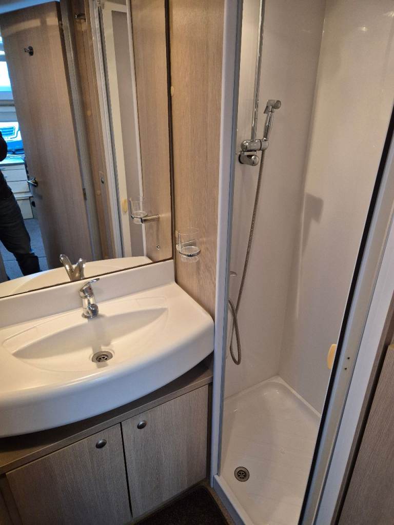 END WASHROOM WITH CASSETTE TOILET, SINK, LARGE SHOWER AND WARDROBE,
