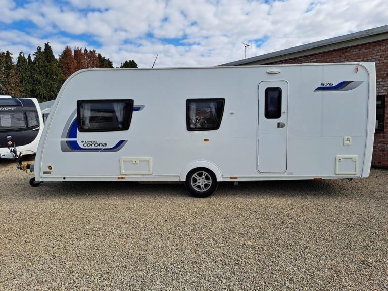 This used 2014 Compass Corona is on display at our Swindon branch. This 6 berth caravan has an End bedroom / washroom and a Fixed bunk beds. This caravan comes with a 12-month warranty. Full 100-point pre-delivery inspection, Alko automatic trailer control for better towing stability, an external BBQ point so no need to connect a separate gas bottle. This caravan is also being supplied with a full starter kit worth over £500. This will include a Gas bottle, Gas pigtail, Leisure Battery, 25 Metre mains cable, Aquaroll, Wastemaster, Hitch Lock and Step. If you have all of these items we will supply £500 vouchers to spend in our shop instead. If you would like to hold this Compass Corona caravan for 72 hours we can take a refundable deposit of £500 subject to you viewing the caravan. If you require any further information on this caravan either call one of our sales team., Microwave, Gas Bbq Point, Alko Trailer Control, 12v Power, Alloy Wheels, Awning Light, Battery Charger, Blinds, Cassette Toilet, Double Glazing, Flyscreens, Free Standing Table, Fridge, Fridge Freezer, Galvanised Chassis, Heater, Heki Rooflight, Hitch Stabiliser, Hob, Hot And Cold Shower Unit, Insulated Panels, Loose Fit Carpets, Mains Electric, Mixer Taps, Oven, Pull Out Bed, Shower, Shower Unit, Skylight, Smoke Detectors, Spare Wheel, Tv Aerial, Central Heating, Blown Air