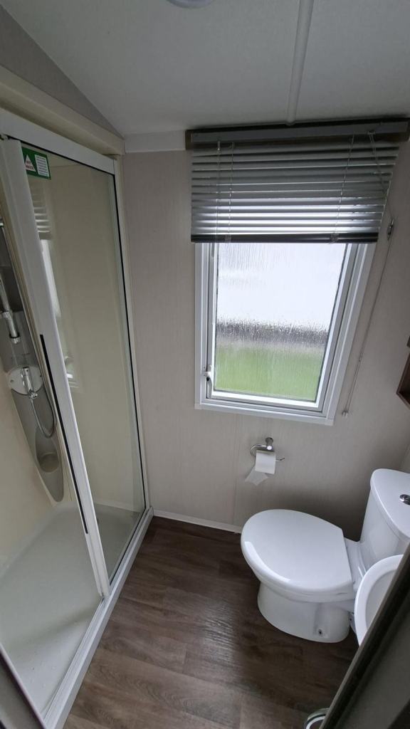 One of the real advantages of this model is the bathroom layout — the master bedroom has its own en-suite shower room, while a separate family shower room serves the rest of the caravan. Combined with double glazing and central heating, this makes the Bordeaux suitable for year-round off-site use.