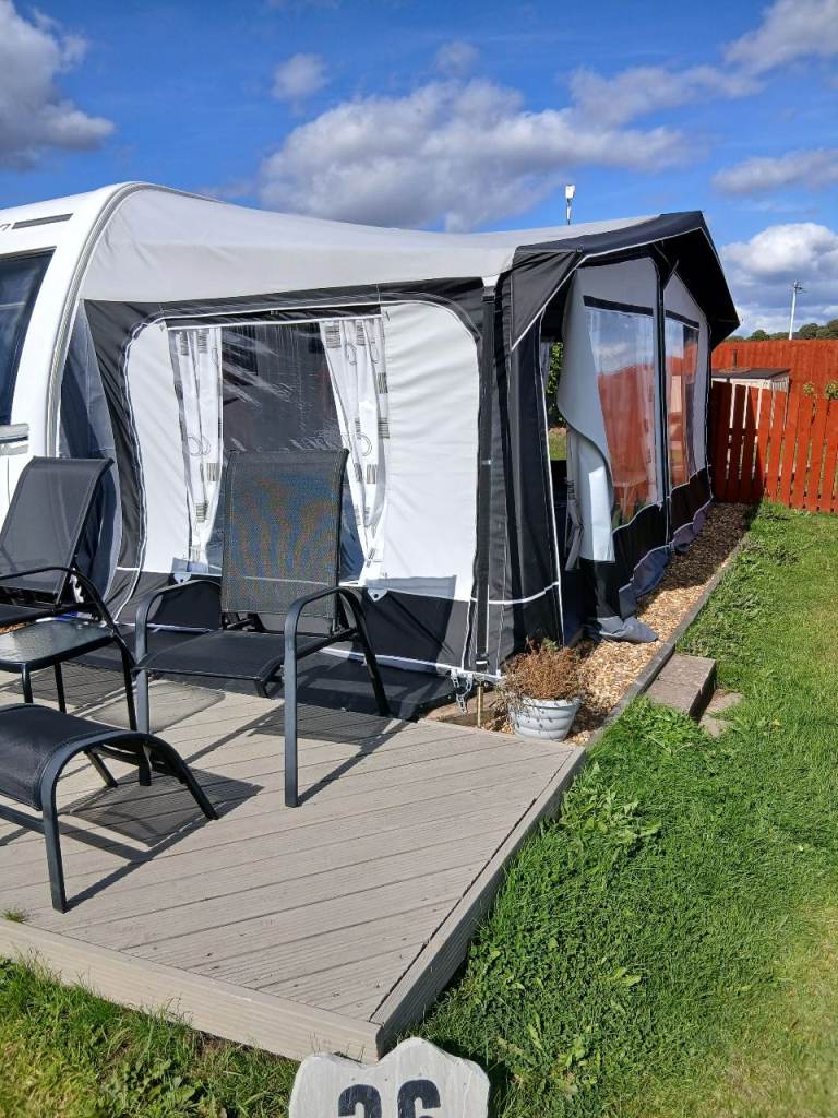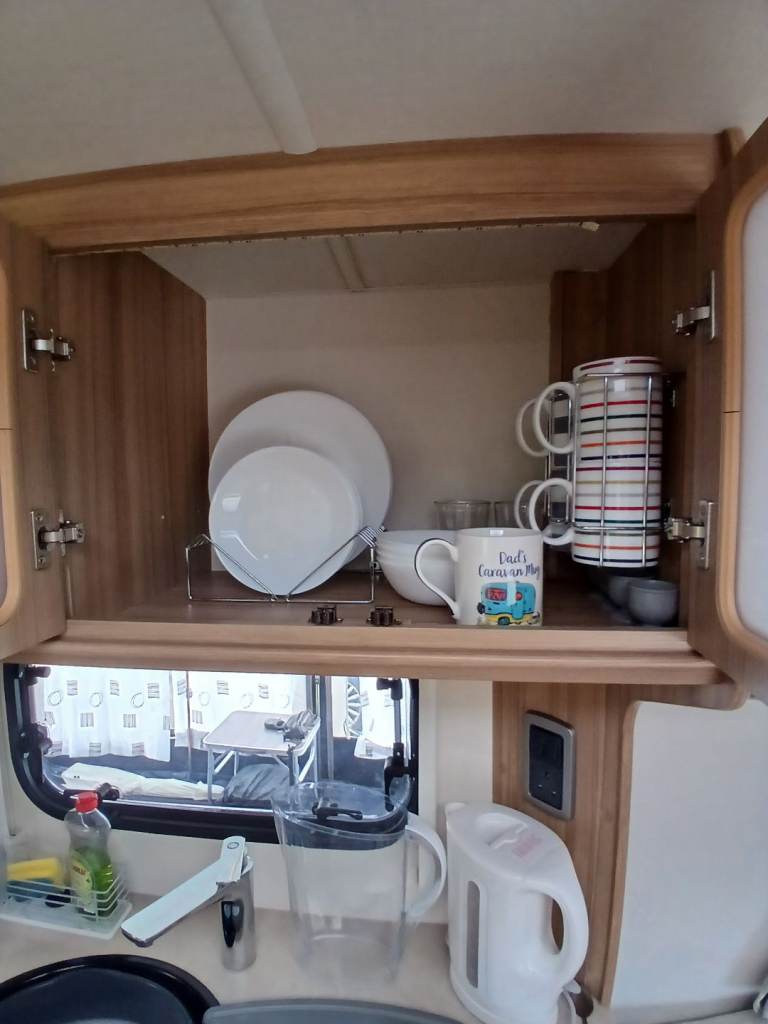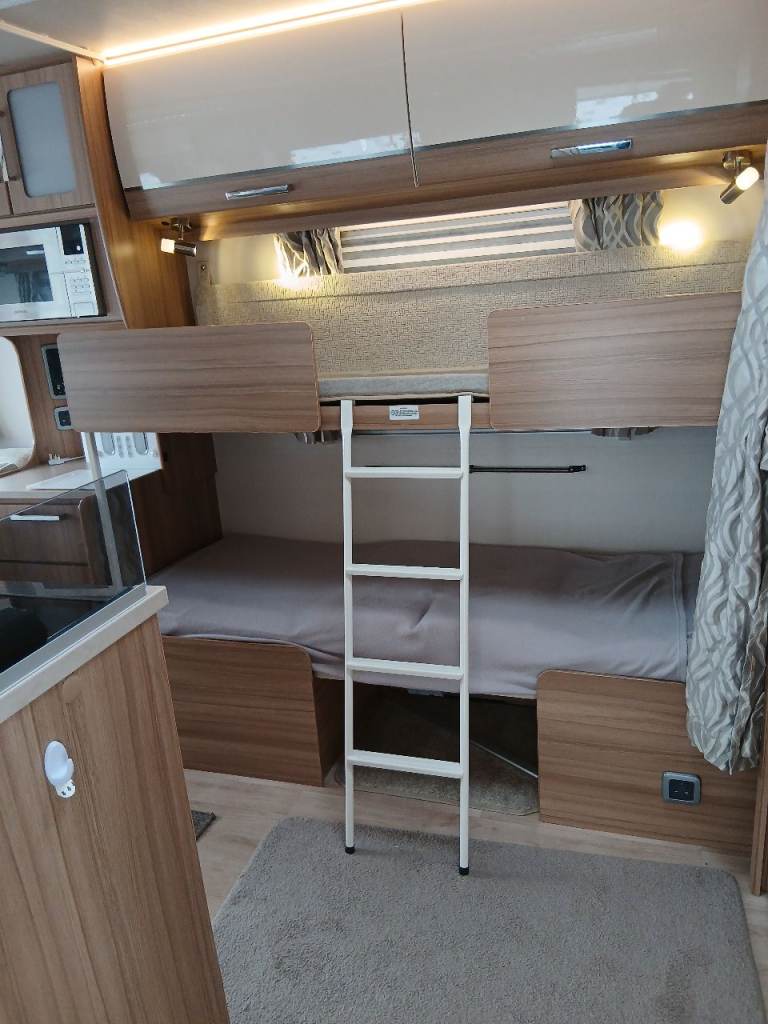 Excellent condition. Lounge converts to double or 2 singles. Dinette converts to bunk beds if required. Alde heating system. Shower, sink and swivel cassette toilet. Full cooker with seperate oven and grill. Fitted microwave. Fitted aerial. Sergeant alarm system. CRIS registered. Hitch and wheel locks.Water/waste barrels with inline continuous water feed. Crockery/cutlery included. Removable interior carpets. Full length Cayman awning and awning carpet with inflatable couch. Good dry, solid van. In secure storage but can show everything working.