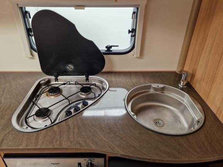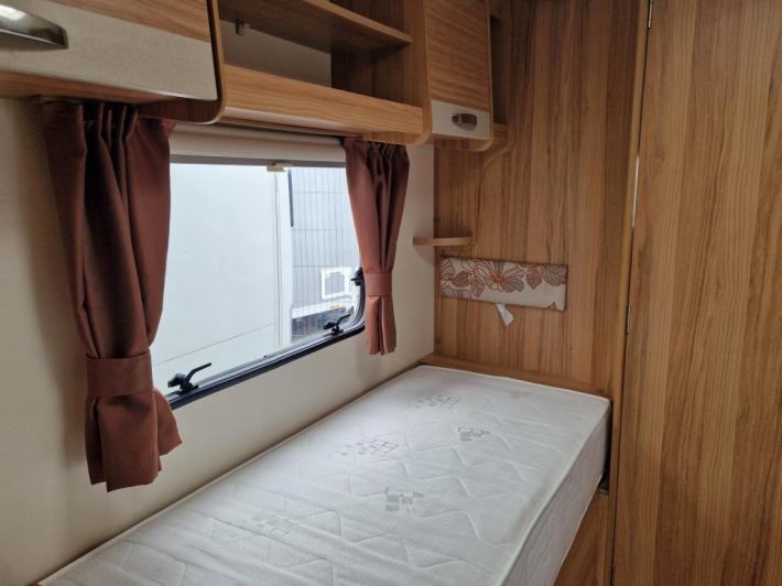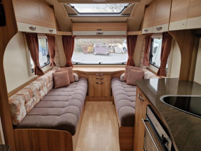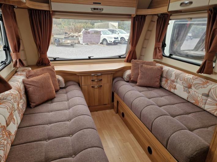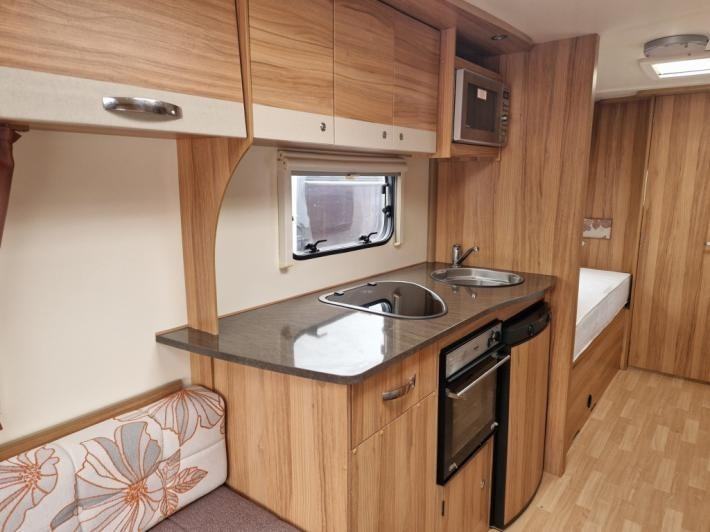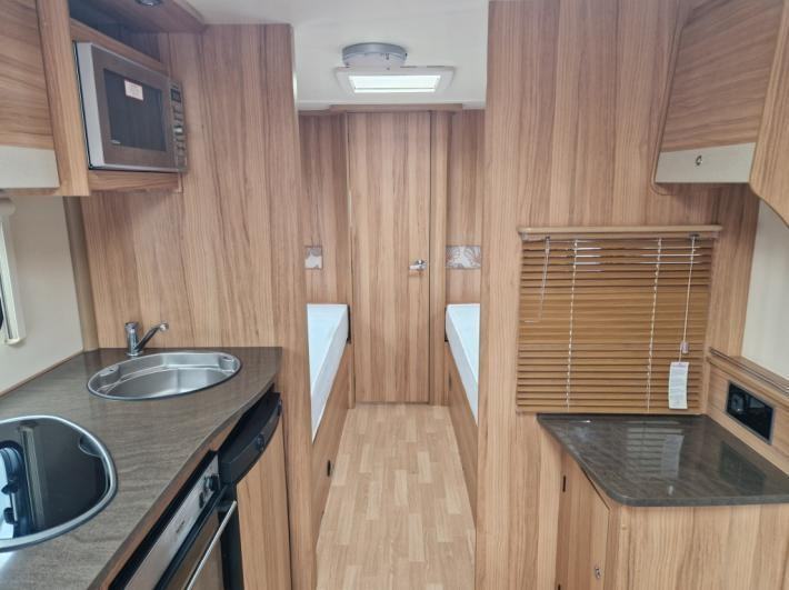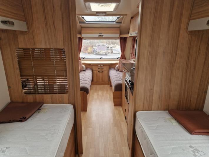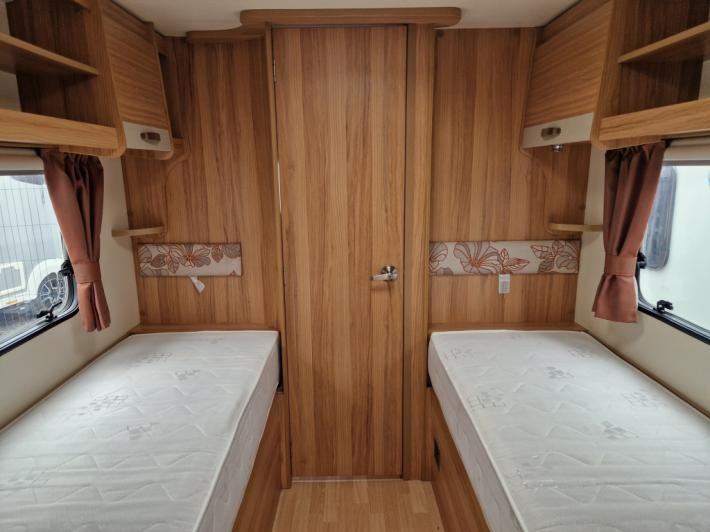 Twin beds,Fridge,Oven,Mains electric,Water heater,Cassette toilet,Shower,Blinds,Fly screens,Loose fit carpets,Heki rooflight,Battery charger,Alloy wheels,TV Directional Aerial,GRP side panels,Sun roof,External 230v,12 month warranty,Truma blown air heating