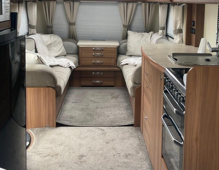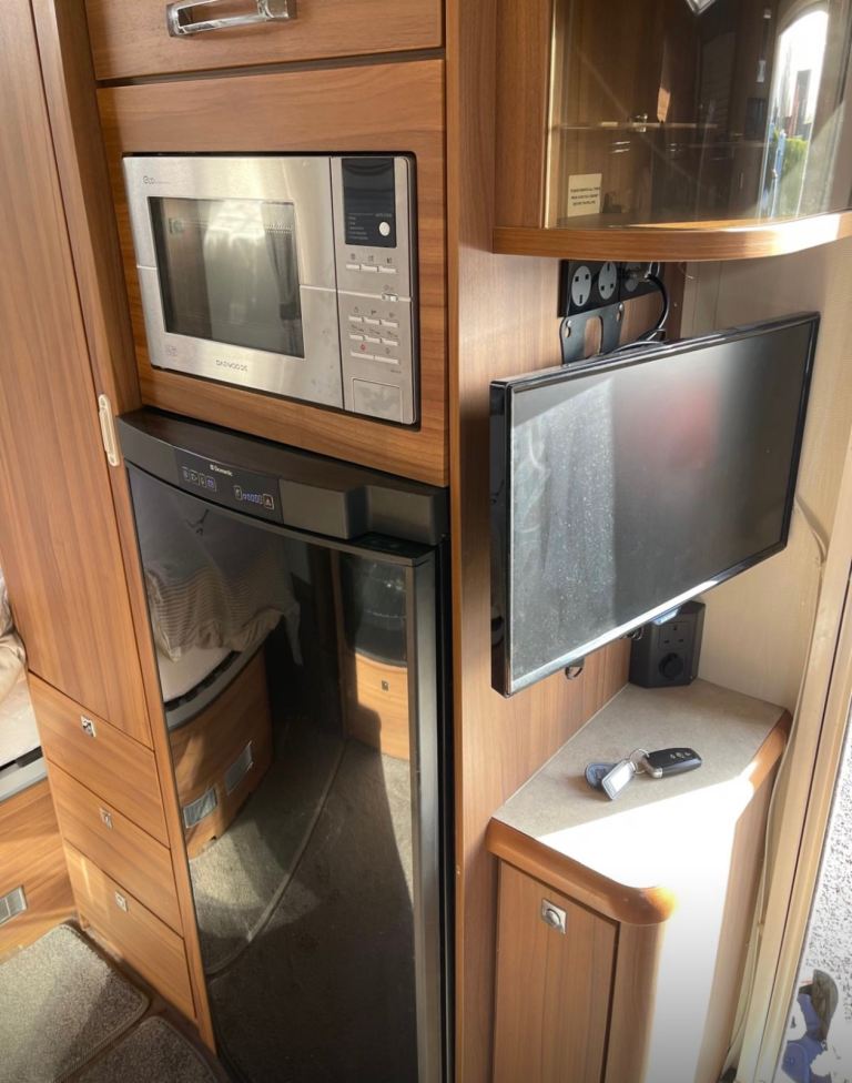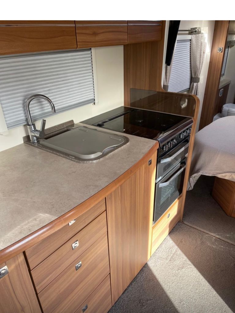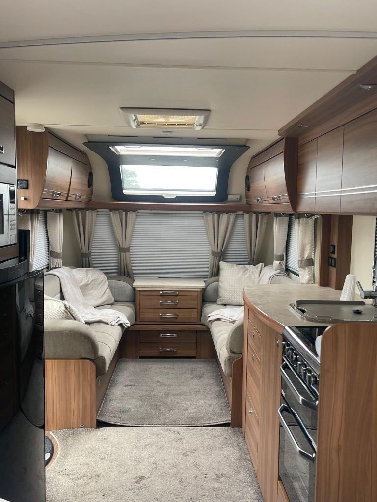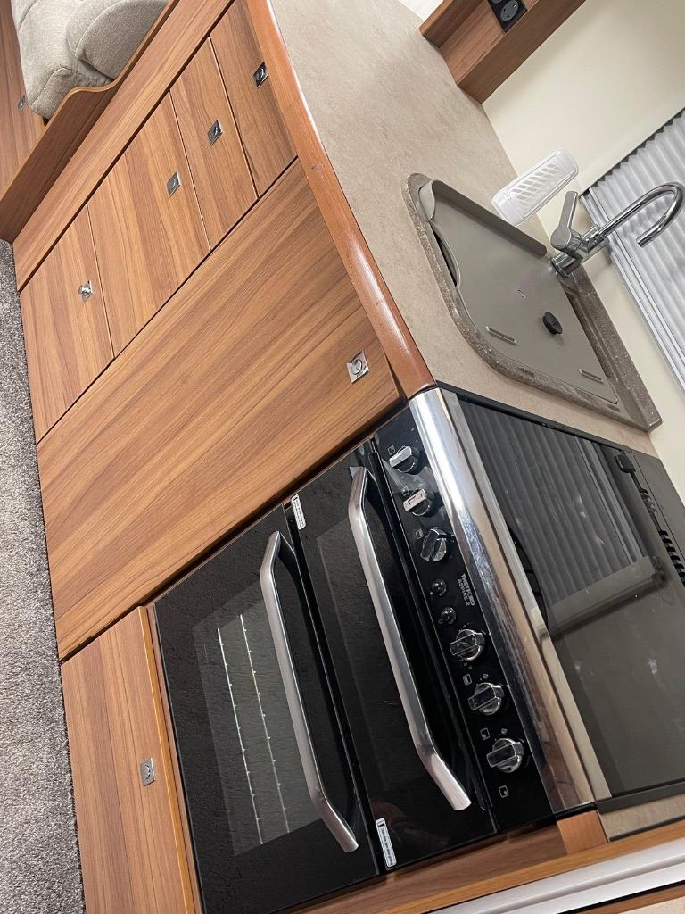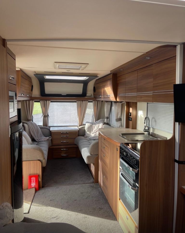 Spacious front lounge, centre kitchen , gas hob, microwave, fridge freezer , oven/grill , fixed island bed .8 foot wide