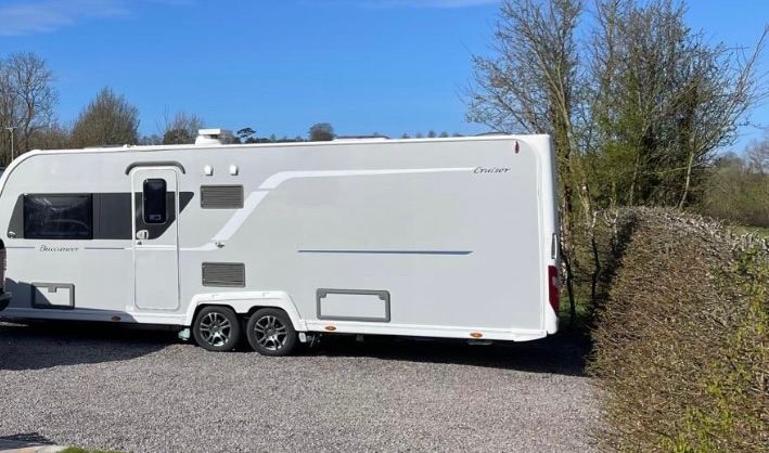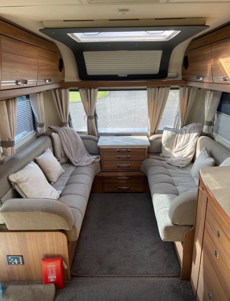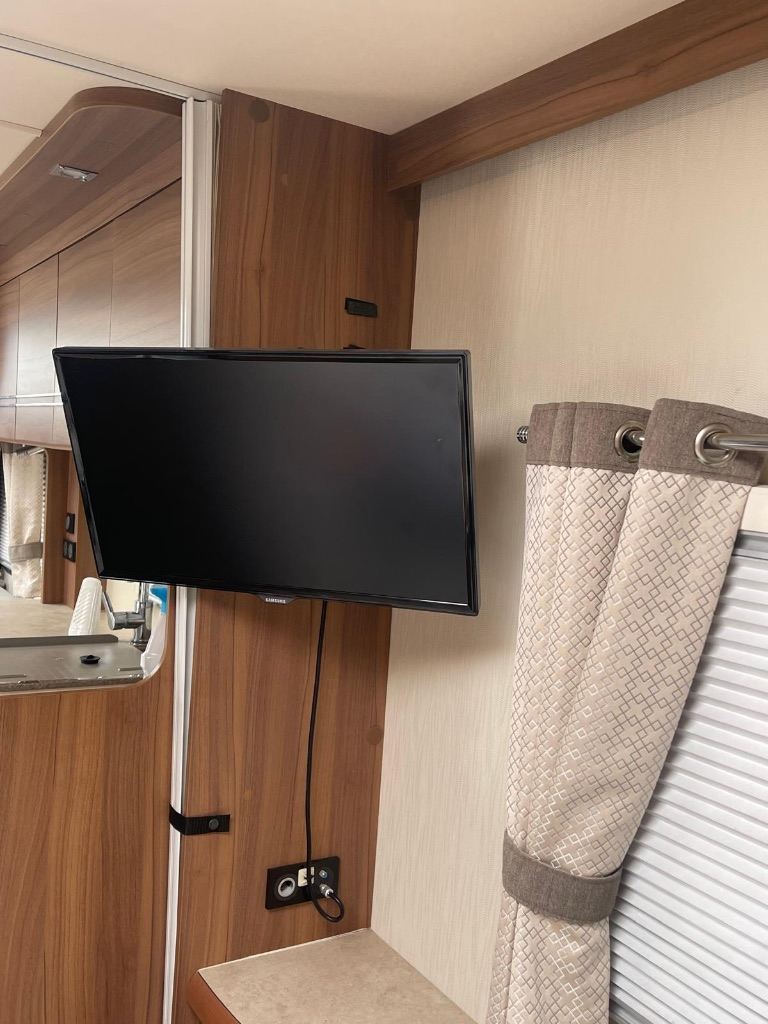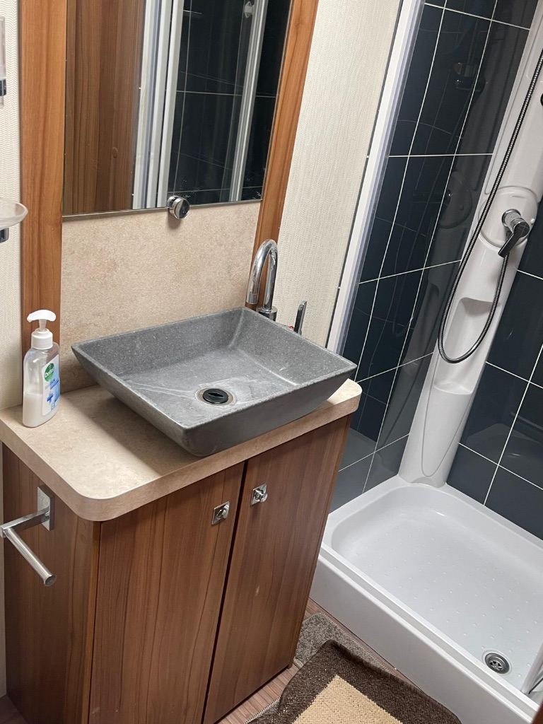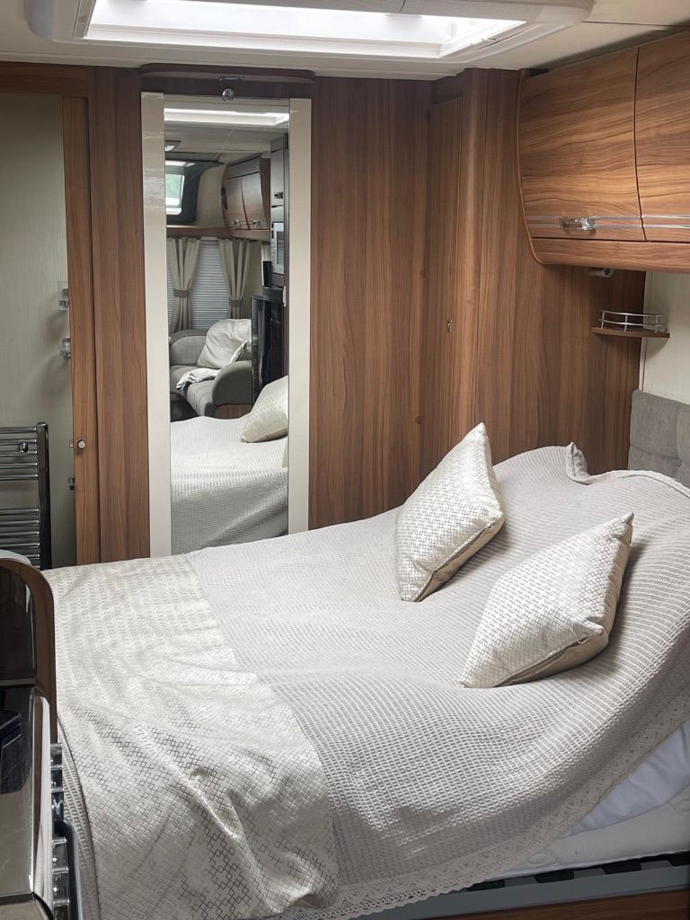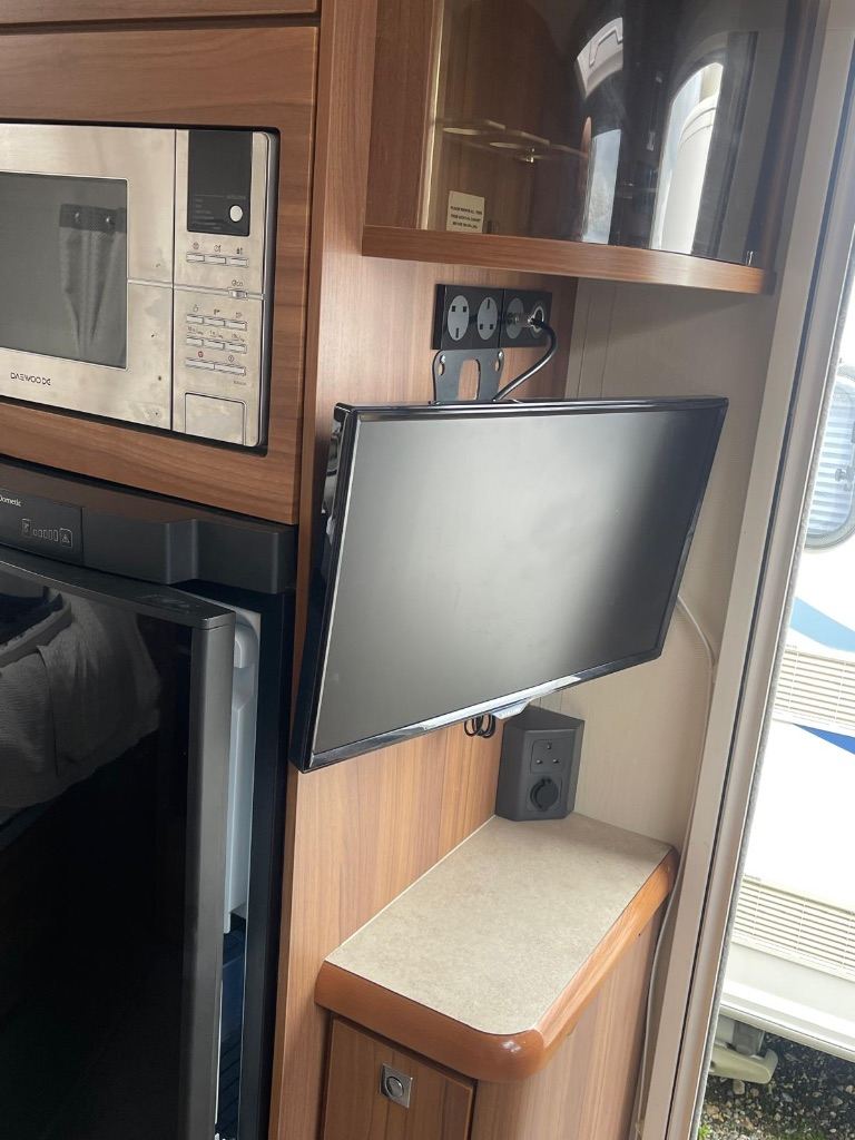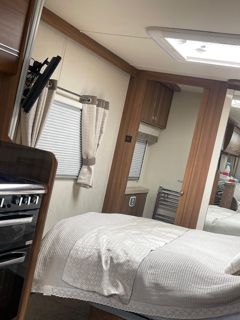 Rear washroom with shower , auto levelling system, satellite Tv aerial , two tvs , solar panel , water tank in house , water heater , heating , cloth upholstery Lots of extras , wide caravan .