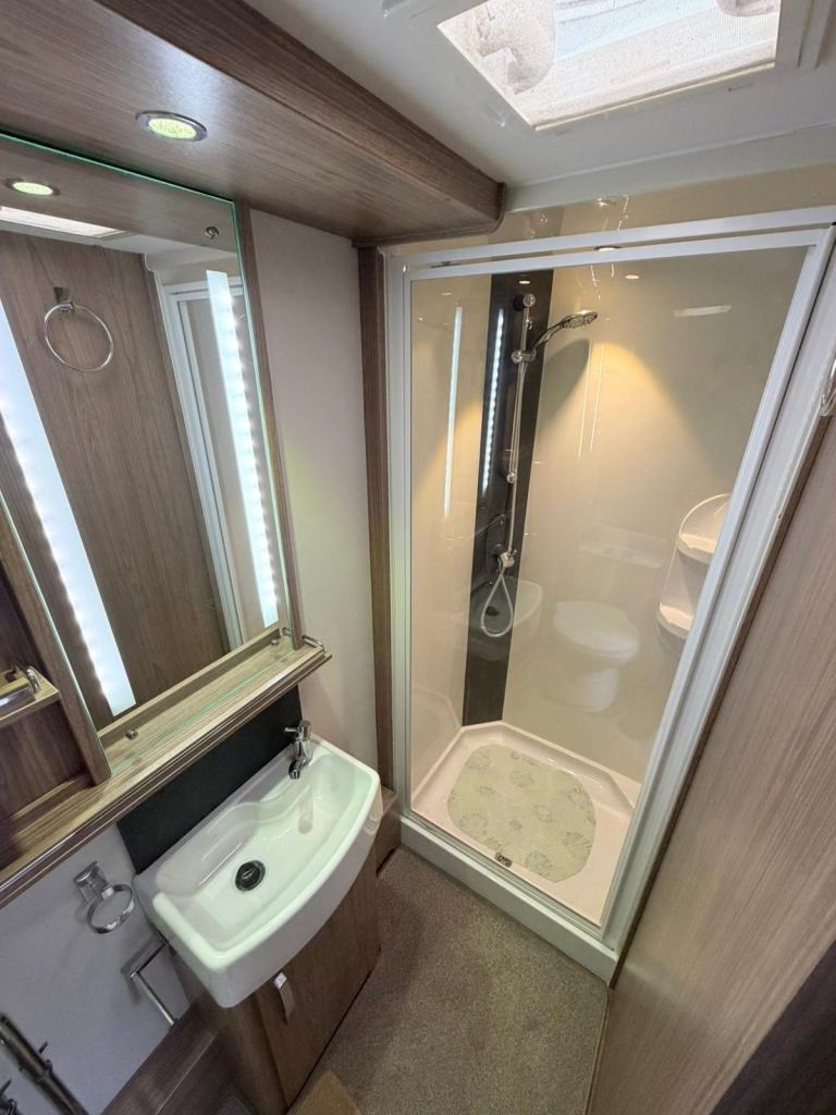 Sunroof; Central Heating; Fixed Double Bed; Alarm; Microwave; Cooker; External Side Lockers; 12V Lighting; Blinds; Grill; Mains Hookup; Separate Shower; Solar System; 240V Lighting; Oven; Sink; AM/FM Stereo; Hand Washbasin