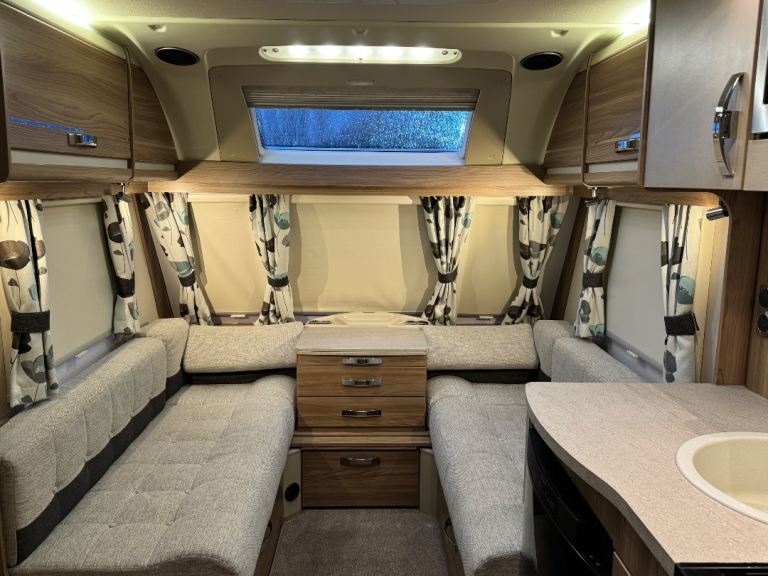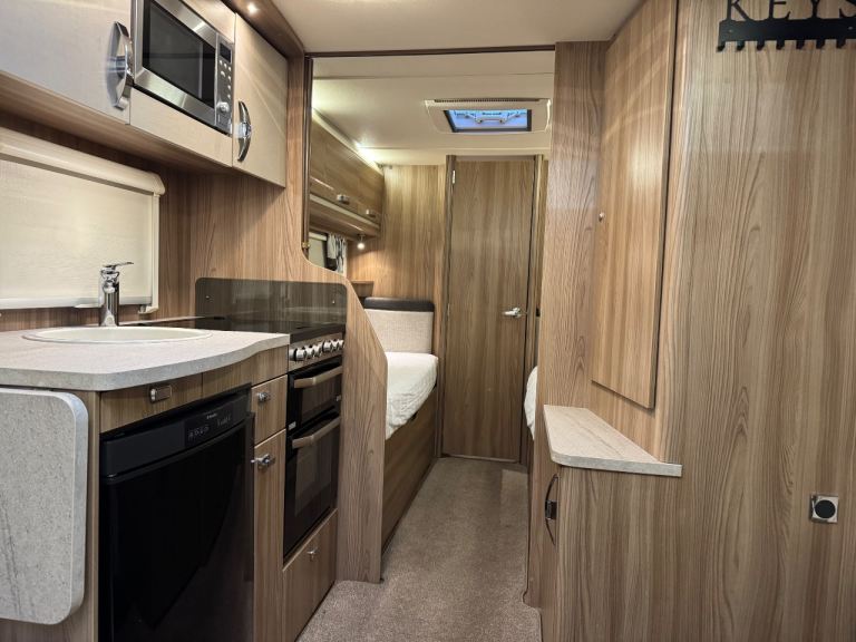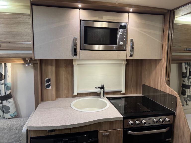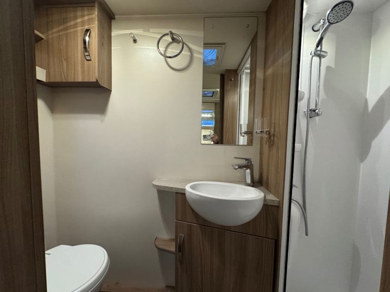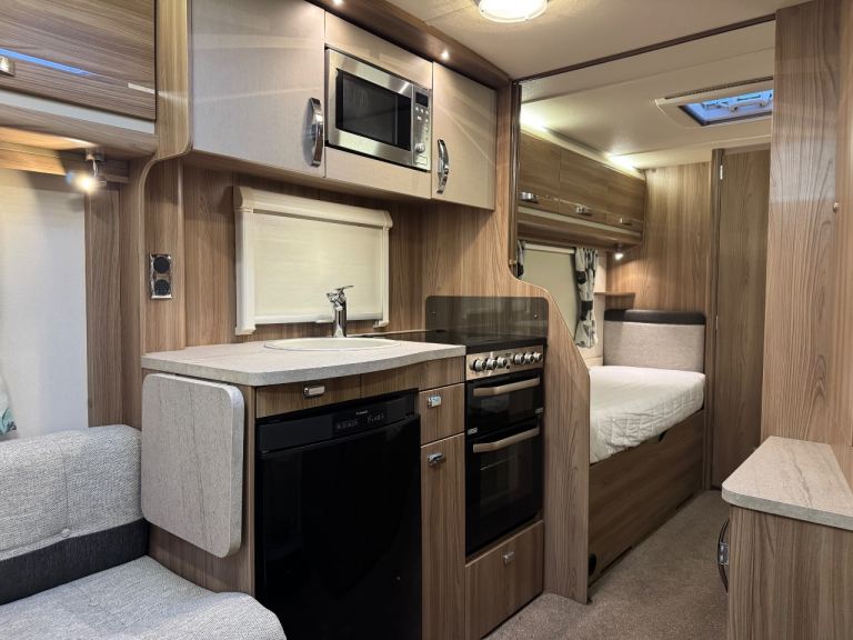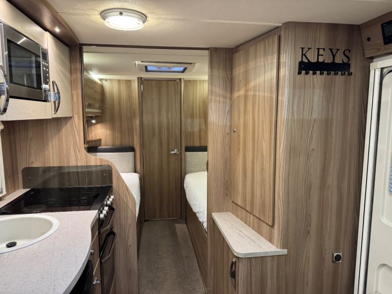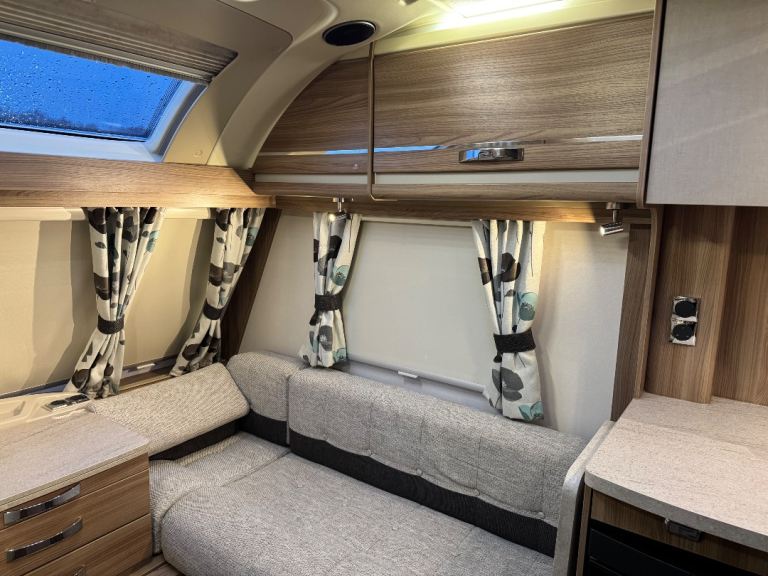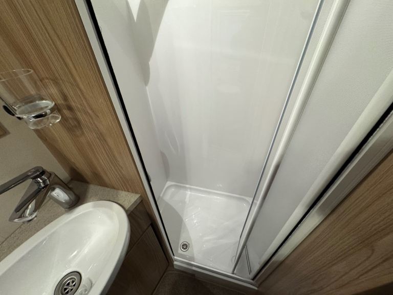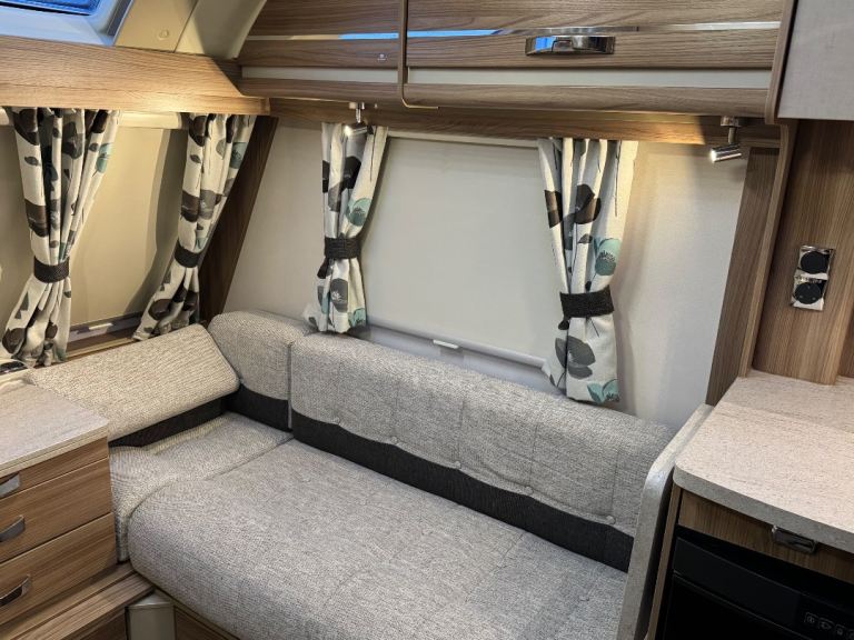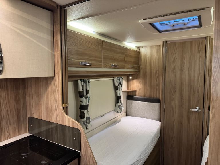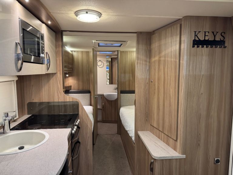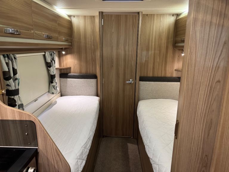 4 Berth Fixed single beds,End washroom with separate walk-in shower and swivel Electric cassette toilet,Front seating area can be made into a double bed or two single beds,Truma heating system,kitchen area with a 3 burner hob,
