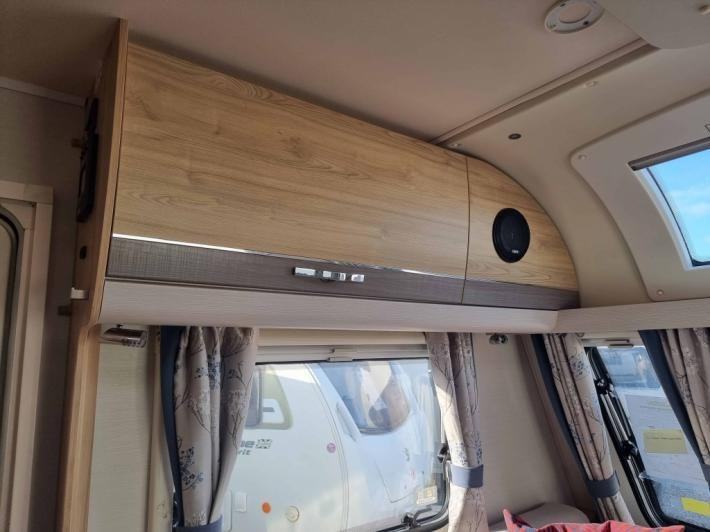 Fixed Bed,Fridge,Microwave,Oven,Mains electric,Water heater,Cassette toilet,Shower,Blinds,Fly screens,Loose fit carpets,TV Directional Aerial,Sun roof,External 230v