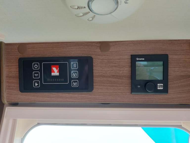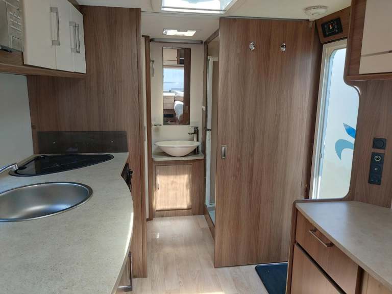 It also has a 3 way fridge freezer, oven hob and grill, blinds and nets on all the windows , retractable net on the door , heki rooflight , Truma Heating system , roof mounted digital directional aerial with booster box , 12v and 240v electrics , stereo radio cd player, microwave oven, luxurious upholstery , excellent wood work and removable carpets, lots of storage space , end wash room, separate shower , sink with vanity unit and swivel cassette toilet.