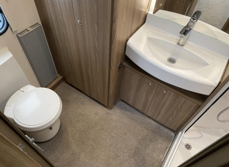 The rear of the Conqueror 530 is home to a large rear washroom with a separate shower, cassette toilet and vanity sink.