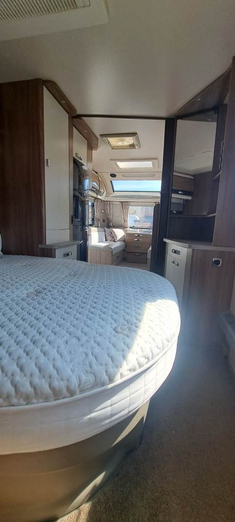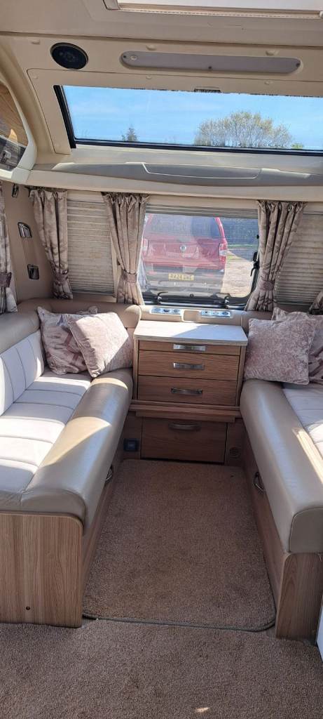 Features Include: Alde Wet Central Heating, Door Fly Screen, External BBQ point, external 230v socket, external TV/satellite point Front Dinette, Heki Rooflight, Loose Fit Carpets, solar panel fitted, Mains Electric, Large Wardrobe, Hitch Stabiliser, Electric & Gas Hob, Battery Charger, Al-Ko ATC Trailer Control, Blinds, Fly Screens, Hot Water, Spare Wheel, Tower Fridge,