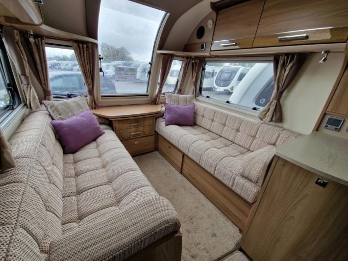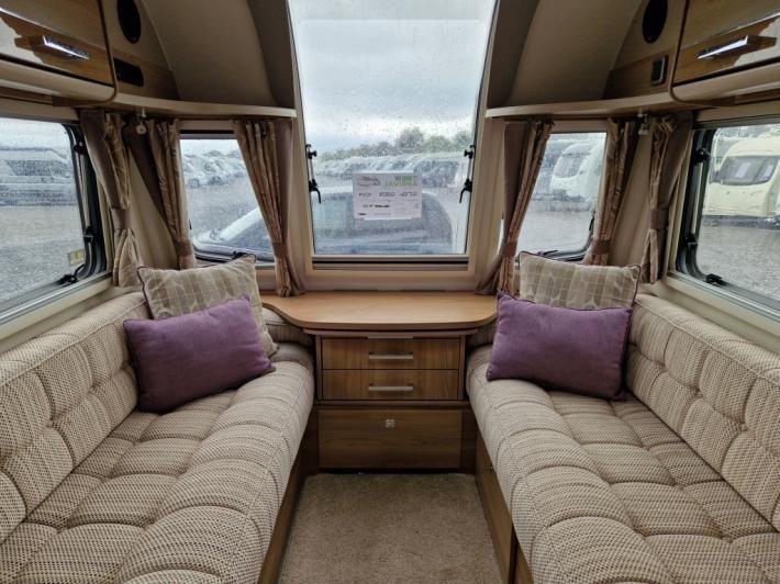 Fixed Bed,Fridge,Microwave,Oven,Mains electric,Water heater,Cassette toilet,Shower,Blinds,Fly screens,Door flyscreen,Loose fit carpets,Stereo system,Heki rooflight,Battery charger,Twin axle,Solar panel,Alloy wheels,Spare wheel,TV Directional Aerial,GRP side panels,Hitch head stabiliser,External 230v,12 month warranty,Part exchange welcome,Finance available subject to status written quotations available on request