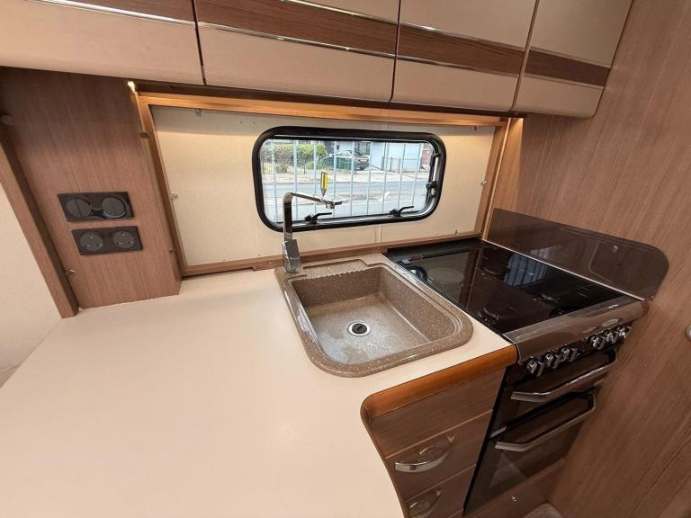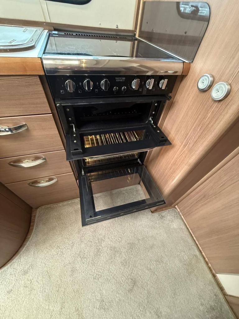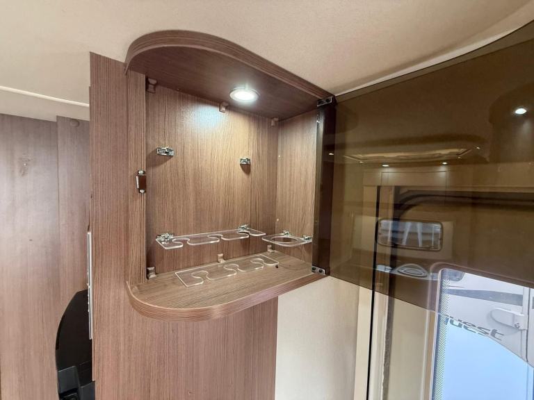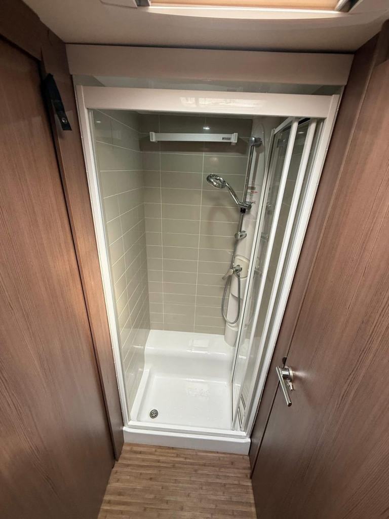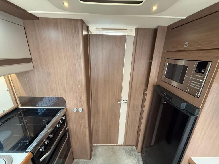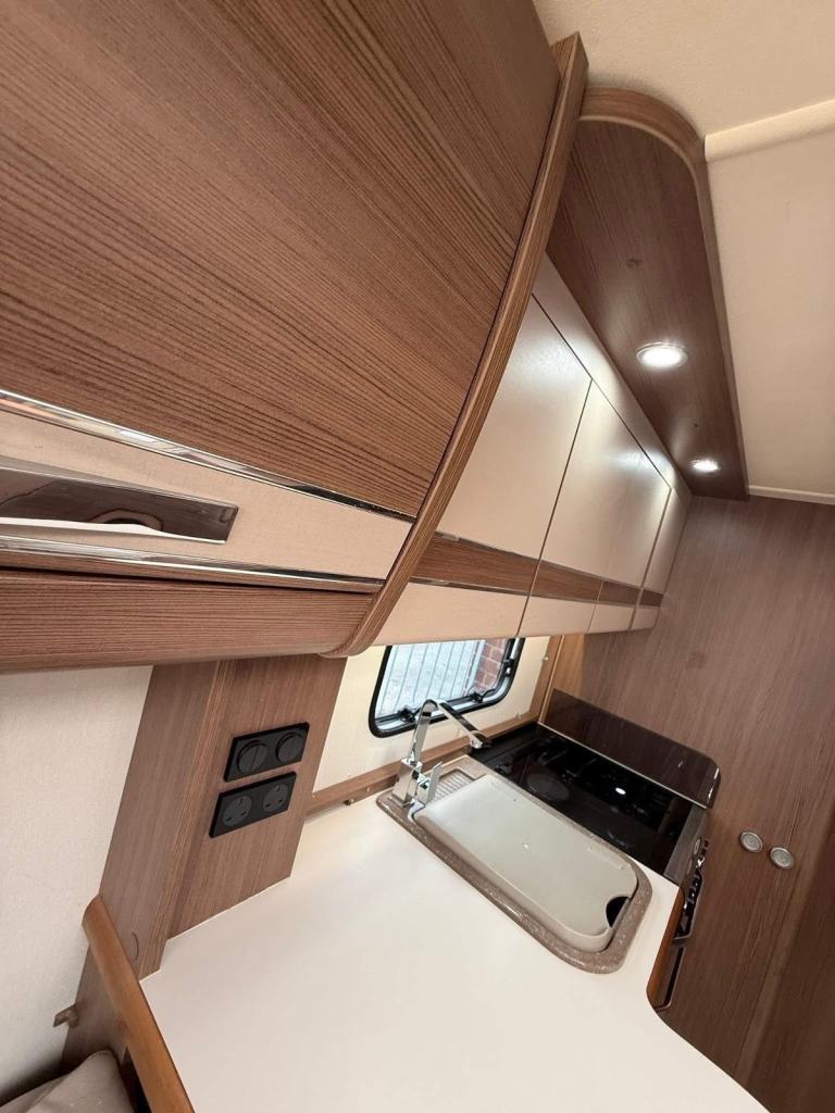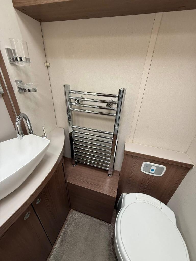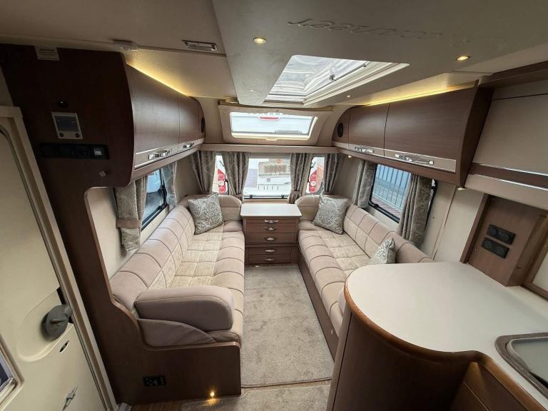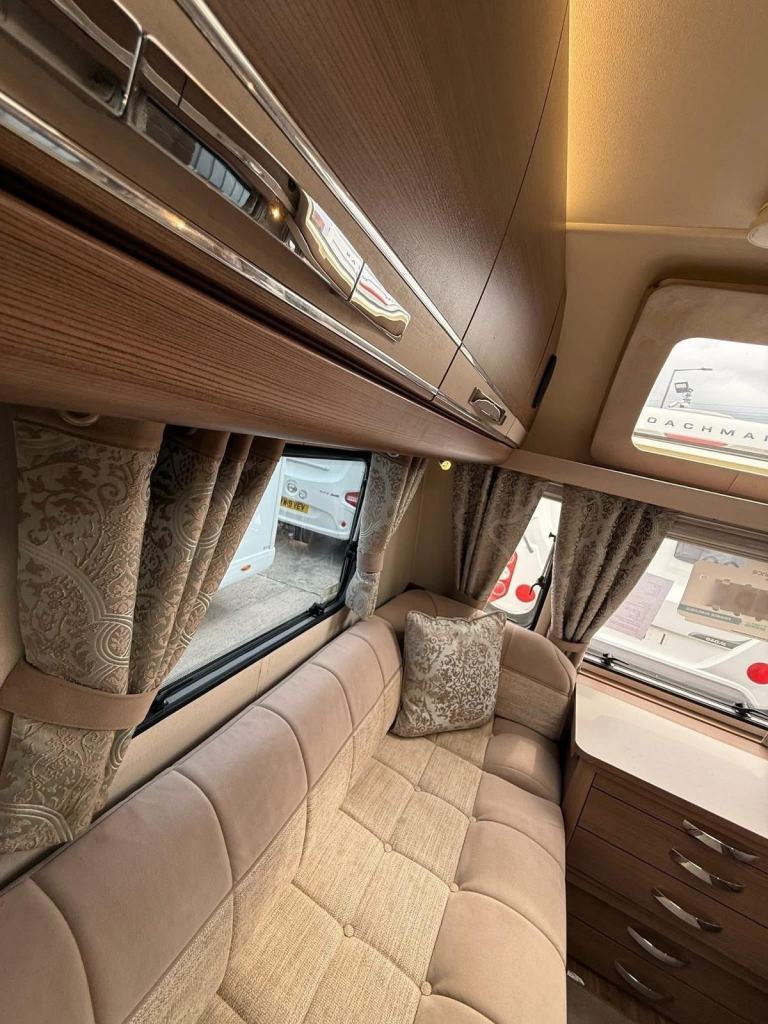 The Buccaneer Commodore is a twin-axle model with retractable transverse fixed island bed at the rear and superbly spacious lounge up-front, separated by luxurious washroom and shower room amidships. This central area can be closed off from both the bedroom and from the living area, creating a true en-suite layout. A flexible option for couples and families alike.
