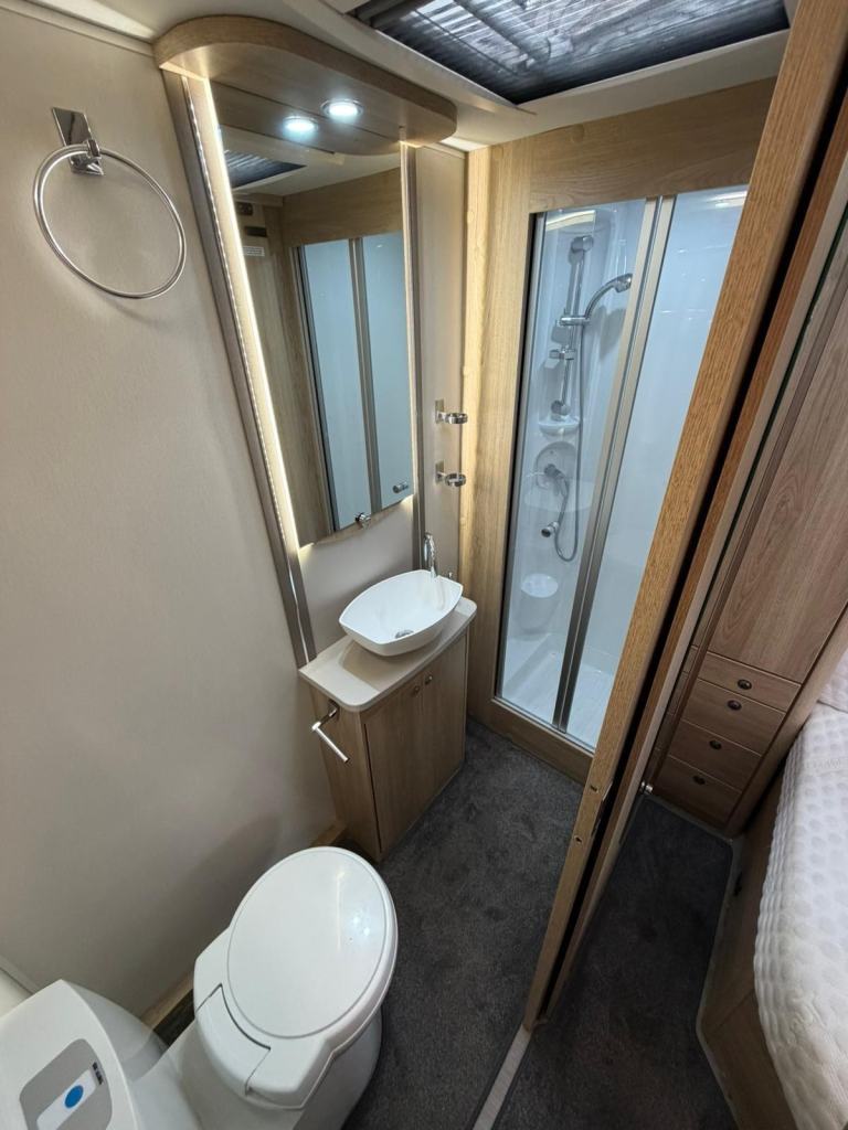 Sunroof; Central Heating; Alarm; Microwave; Fixed Double Bed; Cooker; External Side Lockers; 12V Lighting; Blinds; Grill; Mains Hookup; Separate Shower; 240V Lighting; Oven; Sink; AM/FM Stereo; Hand Washbasin