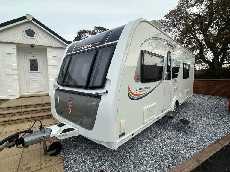 2017 ELDDIS AVANTE 574-OSPREY SPECIAL EDITION, 4 berth, 1 owner, fsh serviced every year, and just had a service, osprey upgrades over a normal avante are alko ATC, upgraded upholstery, power touch motor mover, solar panel, larger sky light, outside gas & electric points, outside shower point, outside awning blower heating, offside exterior light, light inside gas bottle locker, exterior access to an under-settee locker, automatic gas cylinder changeover system, osprey decals, Great value at only 12995