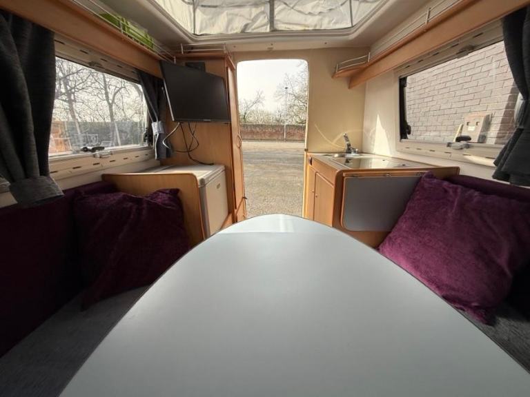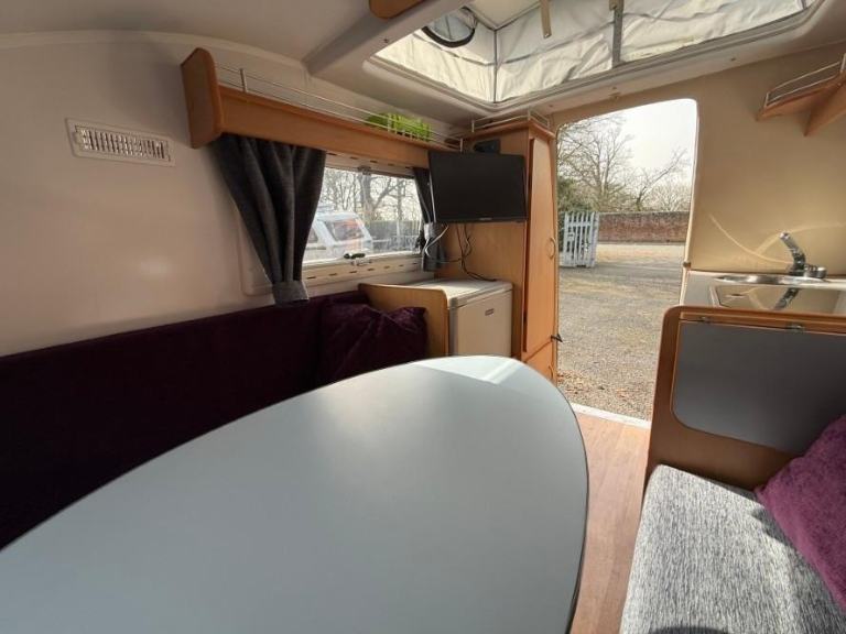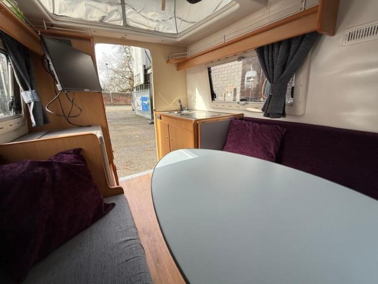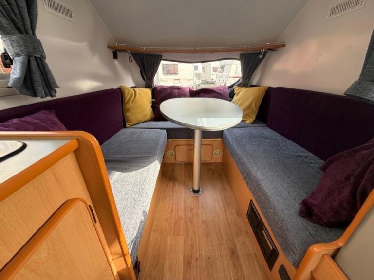 TV; TV Aerial; Solar System; Mains Hookup; Sink; Microwave; 12V Lighting; Round Seating Group; Blinds