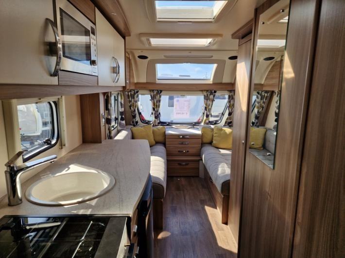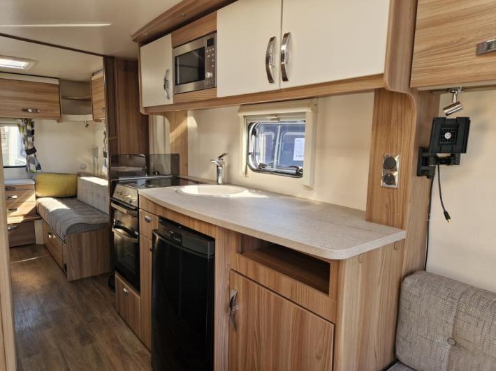 Fridge,Oven,Mains electric,Water heater,Cassette toilet,Shower,Blinds,Fly screens,Loose fit carpets,Battery charger,Twin axle,Spare wheel,TV Directional Aerial,GRP side panels,Sun roof,External 230v,12 month warranty