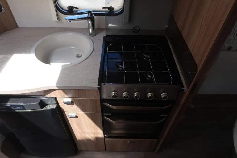 Featuring the highly sought-after fixed island bed and rear washroom layout, this model is ideal for couples or small families who want a luxurious yet lightweight tourer.
