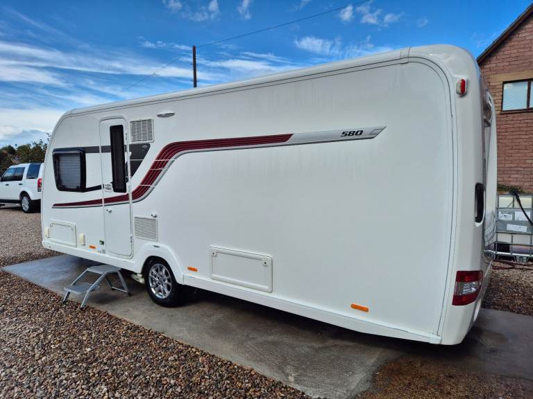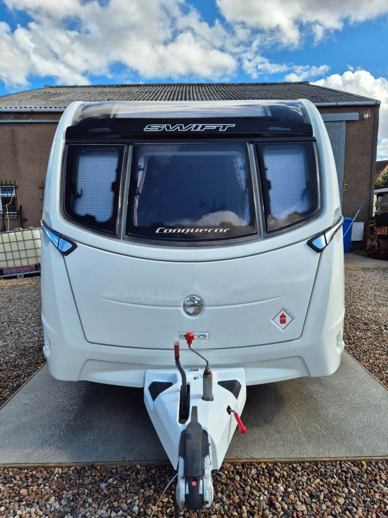 Stunning Condition Throughout. Only 1 owner From New. Cris Registered. Newly Servced With A Full History. Motor Mover. Al-Ko ATC Trailer Stability Control. Fixed island Bed. 2 Sofas Form A Large Double Bed. Cd Player & Radio. Tv bracket With Digital Aerial. Fitted Kitchen Area, Cooker With 3 Gas Hobs & 1 Electric, Gas Grill + Oven. Extractor Fan. Large Fridge + Freezer. Microwave. Good Sized Wardrobes & Capboard Space. Rear Wash Room With Fitted Shower & Cassette Toilet. Alde Central Heating + Hot Water. Alarm & Tracker. Solar Panel. Outside Gas Bbq Connection. 240v Awnaning Plug Socket.