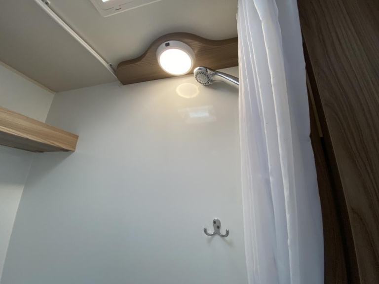 - Shower head & curtain