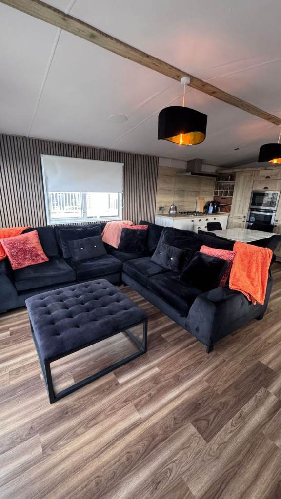 Newly refurbished livingroom end of lastyear media wall 55 inch TV fire new flooring