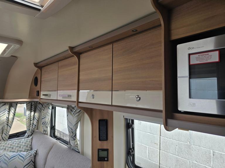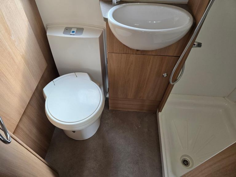 It also has a 3 way fridge freezer, full oven hob and grill, stereo radio, blinds and nets on all the windows, Large heki rooflight, Truma heating system, roof mounted digital aerial with booster box, 12v and 240v electrics, Nice upholstery, lots of storage space, end washroom with separate shower, sink with vanity unit and swivel cassette toilet.