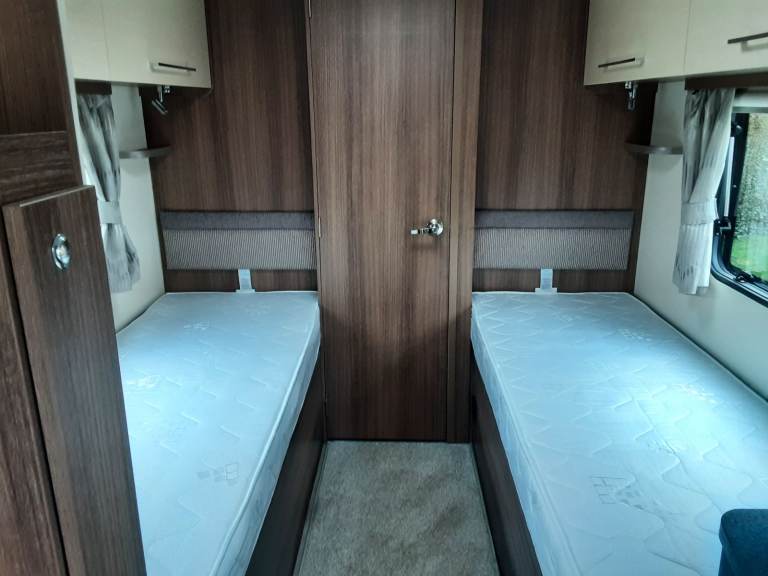The interior has two fixed single beds while the front lounge easily converts to a large double bed if needed.