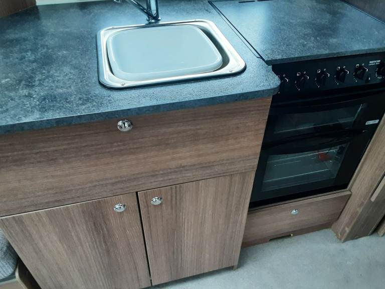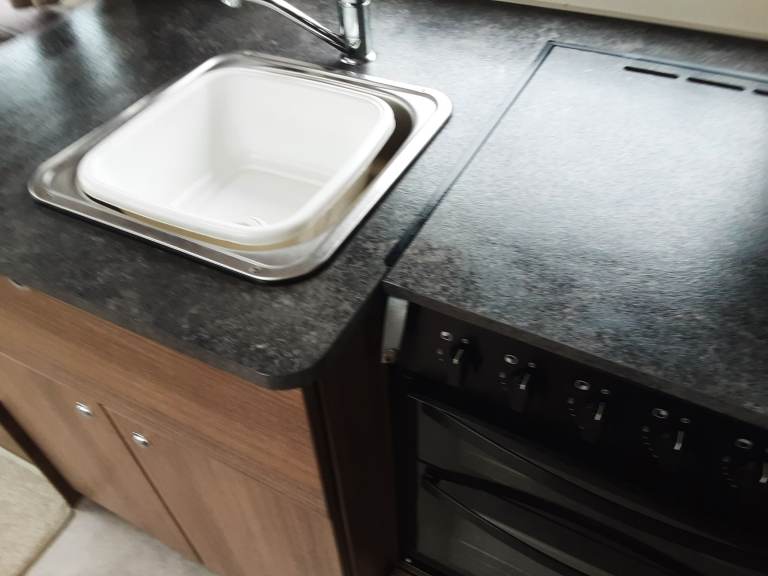 The kitchen is fully fitted with a full oven,microwave and fridge with small freezer. There is also central heating for the cooler evenings.
