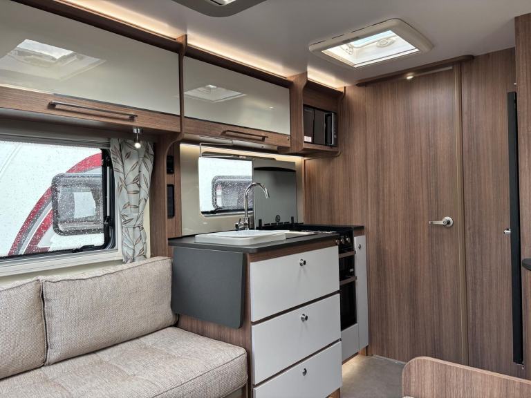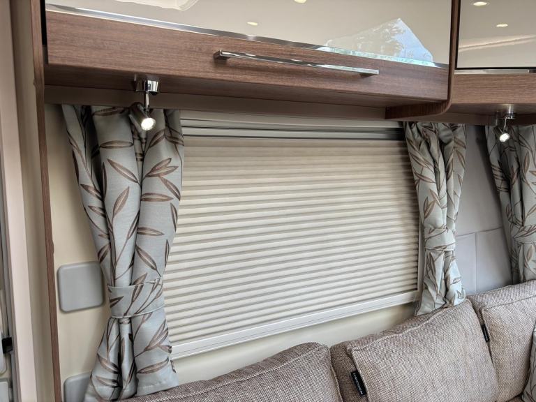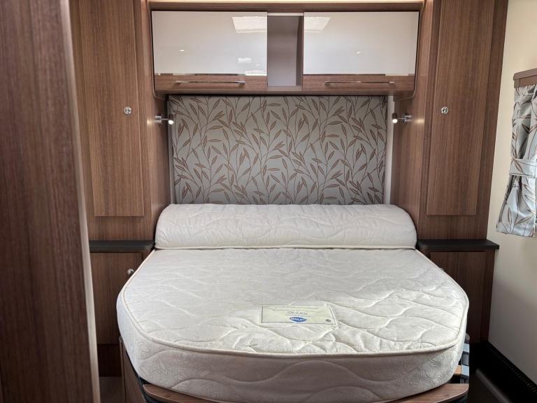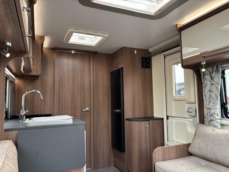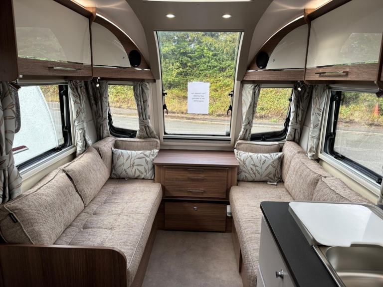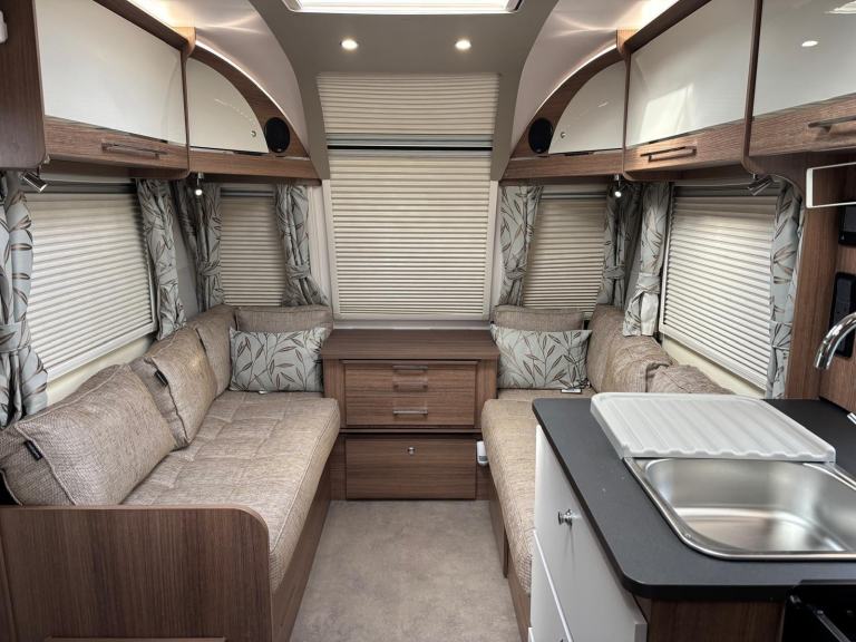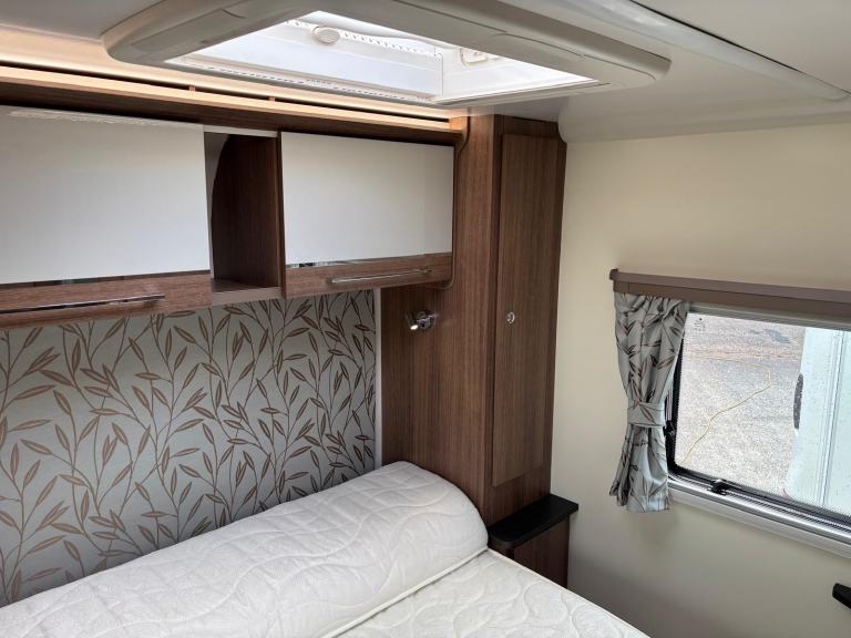 A Top of the range, one owner from new 4 berth caravan with rear island fixed double bed, ALDE Central Heating, Solar Panel with Powrtouch Motor Mover fitted, in well cared for immaculate condition.