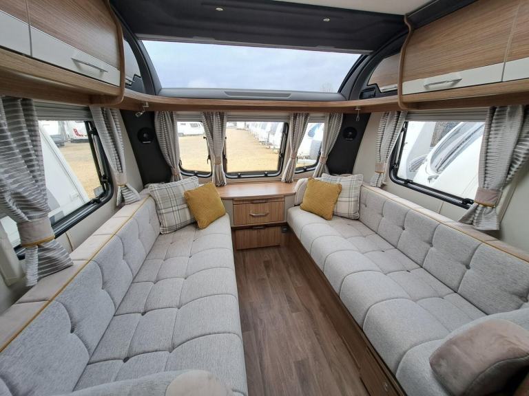 This used 2019 Coachman VIP is on display at our Swindon branch. This 3 berth caravan has an End washroom and a Lounge conversion. This caravan comes with a 12-month warranty. Full 100-point pre-delivery inspection, solar panel for keeping your leisure battery topped up, Alko automatic trailer control for better towing stability, an alarm system to reduce insurance premiums and to give you peace of mind, an external BBQ point so no need to connect a separate gas bottle. This caravan is also being supplied with a full starter kit worth over £500. This will include a Gas bottle, Gas pigtail, Leisure Battery, 25 Metre mains cable, Aquaroll, Wastemaster, Hitch Lock and Step. If you have all of these items we will supply £500 vouchers to spend in our shop instead. If you would like to hold this Coachman VIP caravan for 72 hours we can take a refundable deposit of £500 subject to you viewing the caravan. If you require any further information on this caravan either call one of our sales team., Alarm, Microwave, Solar Panel, Gas Bbq Point, Alko Trailer Control, 12v Power, Alloy Wheels, Awning Light, Battery Charger, Blinds, Cassette Toilet, Double Glazing, Flyscreens, Free Standing Table, Fridge, Fridge Freezer, Galvanised Chassis, Heater, Heki Rooflight, Hitch Stabiliser, Hob, Hot And Cold Shower Unit, Insulated Panels, Loose Fit Carpets, Mains Electric, Mixer Taps, Oven, Pull Out Bed, Shower, Shower Unit, Skylight, Smoke Detectors, Spare Wheel, Tv Aerial, Central Heating, Alde Wet