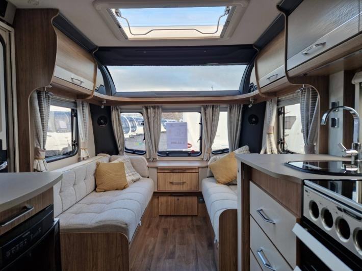 Fixed Bed,Fridge,Microwave,Oven,Mains electric,Water heater,Cassette toilet,Shower,Blinds,Fly screens,Door flyscreen,Loose fit carpets,Stereo system,Battery charger,Alloy wheels,TV Directional Aerial,External 230v,12 month warranty,Part exchange welcome,Finance available subject to status written quotations available on request