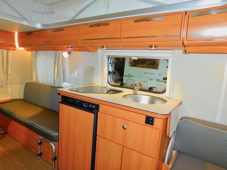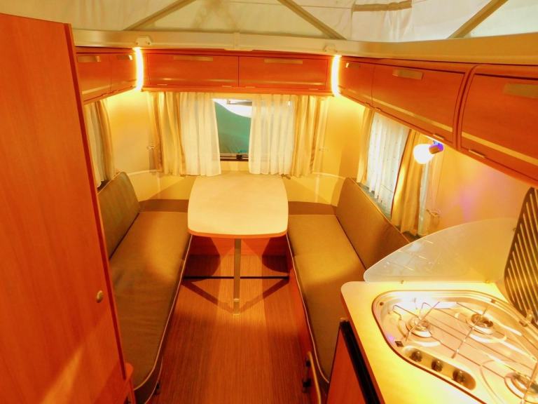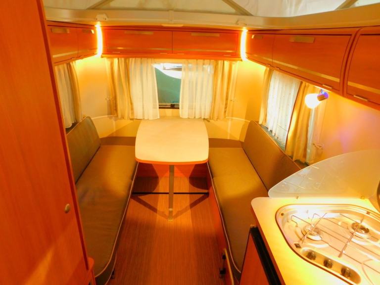 This particular Eriba GT410 has had Only 1 Owner from New. This Model is designed to be Open and Spacious for such a small Caravan, and therefore is designed with the additional dining Area, Kitchen but without a shower room; so is ideal for those who enjoy the Campsite Shower and Toilet Coveniences. The Owner Removed the Heater to create extra Storage for a Porta Potti Toilet in case they needed it in the night. They used a plug in blow heater instead as they preferred this. We could put the heater back for you if you prefer.